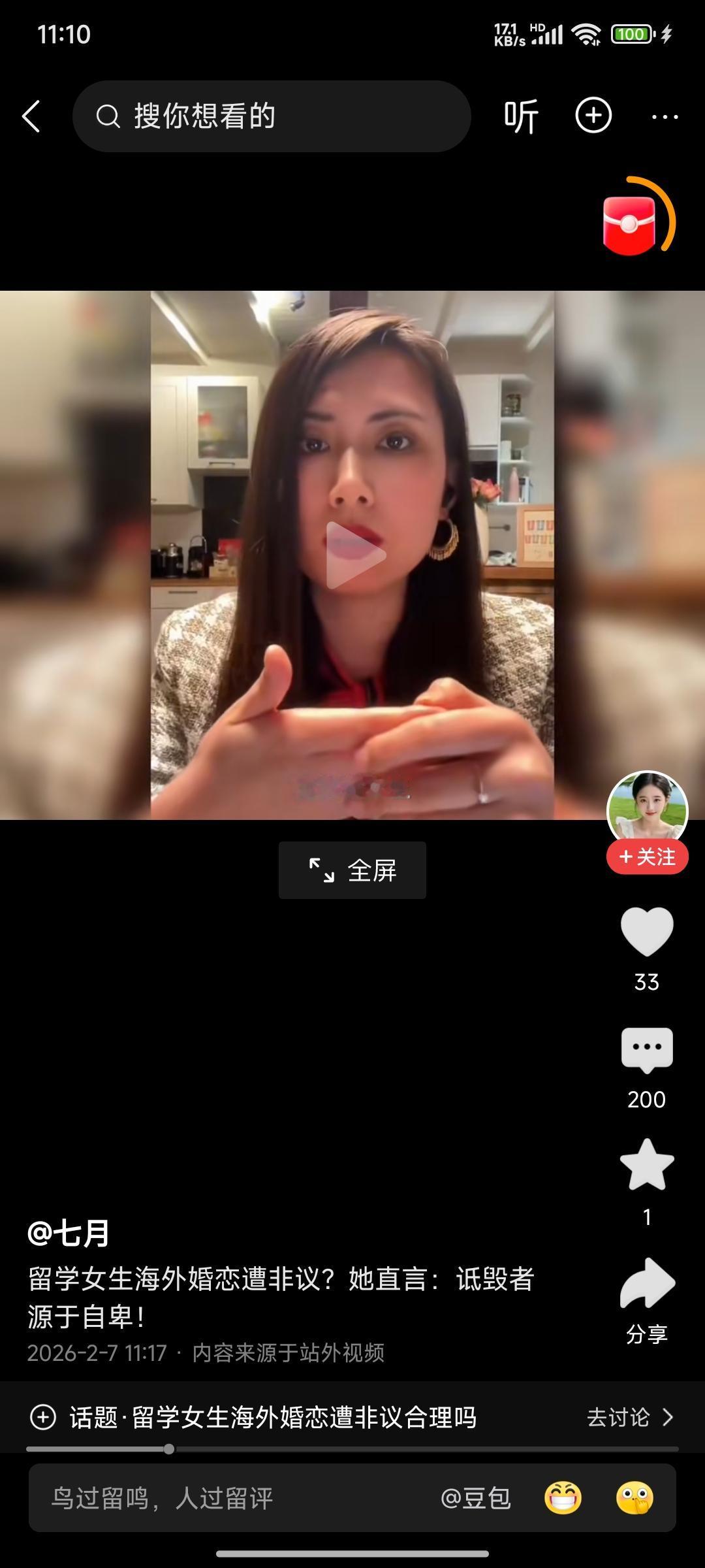 这位,多半是有点问题的。理由如下。 1.强调自己留学法国很久,用见过很多优秀女留学生来侧面自己也很优秀。但一点不提自己留学获得了什么成绩,哪怕是发个期刊,秀个学历都行。这些通通没有,纯口头优秀。 2.营造一种看过世界之后才更更正确的概念。换句话说,她内心是觉得自己是落后低法国一等的。这种逆种族主义的心态,注定她想融入高等种族,更容易为了去迎合她心目中的高等种族去接受驯化了。