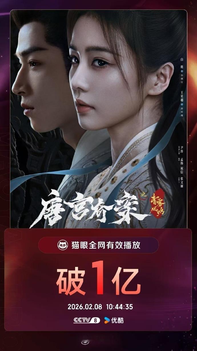 唐宫奇案有效播放破亿白鹿唐宫奇案有效播放破1亿 唐宫奇案有效播放破亿,白鹿唐宫奇案有效播放破1亿啦,我们女官李佩仪探案的故事还在继续,我们故事里再见啦~