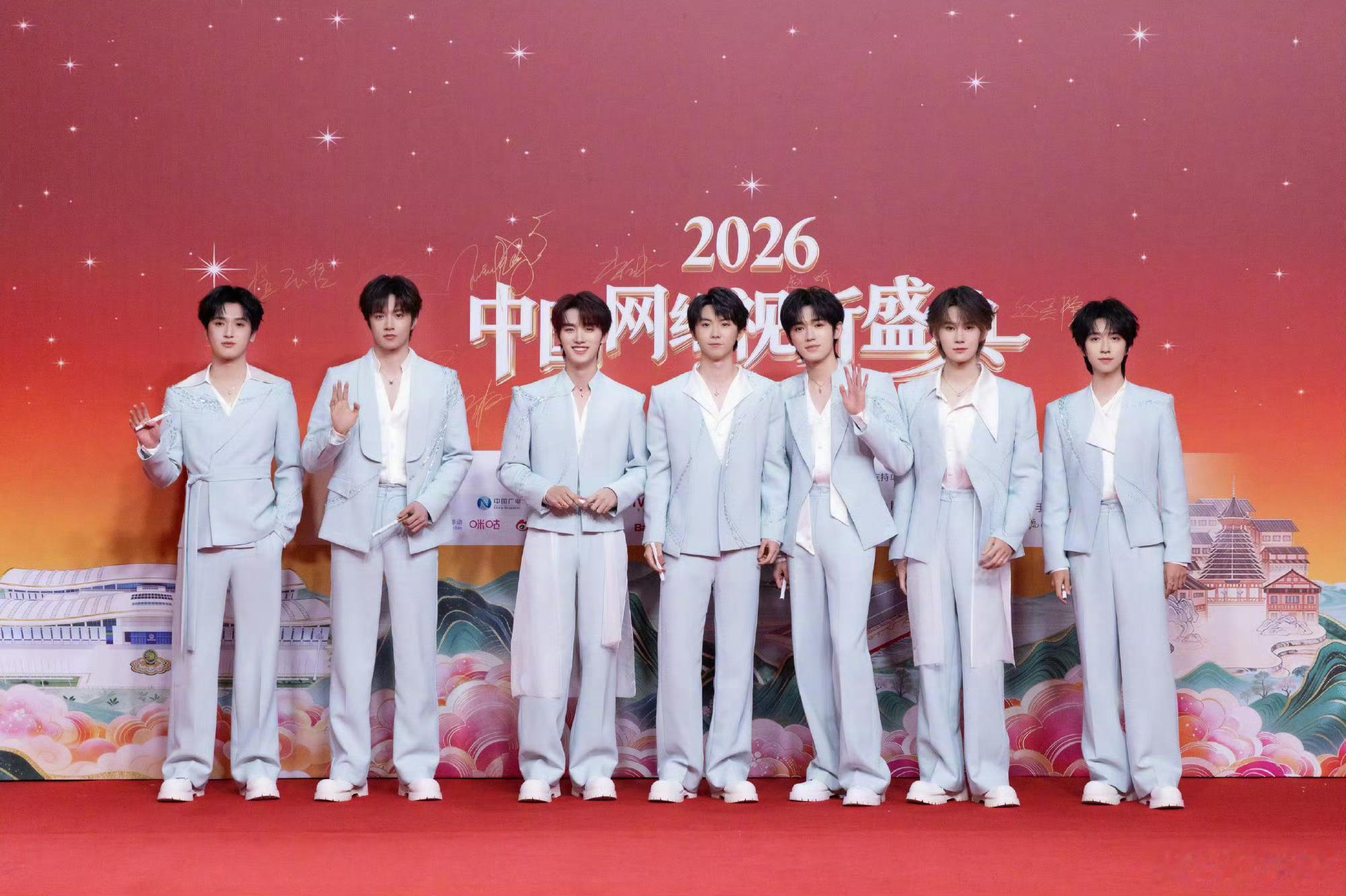 时代少年团芒果TV选送时代少年团全员蓝白look中国网络视听盛典水墨新中式×清爽蓝白造型,少年们红毯氛围感直接拉满!国风与青春碰撞,每一帧都帅气亮眼✨