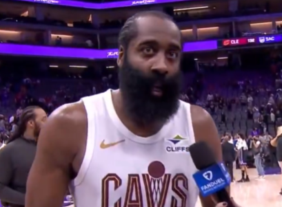虎扑02月08日讯NBA常规赛,骑士132-126战胜国王。赛后,詹姆斯-哈登接受了采访,谈到了与米切尔一起打球。