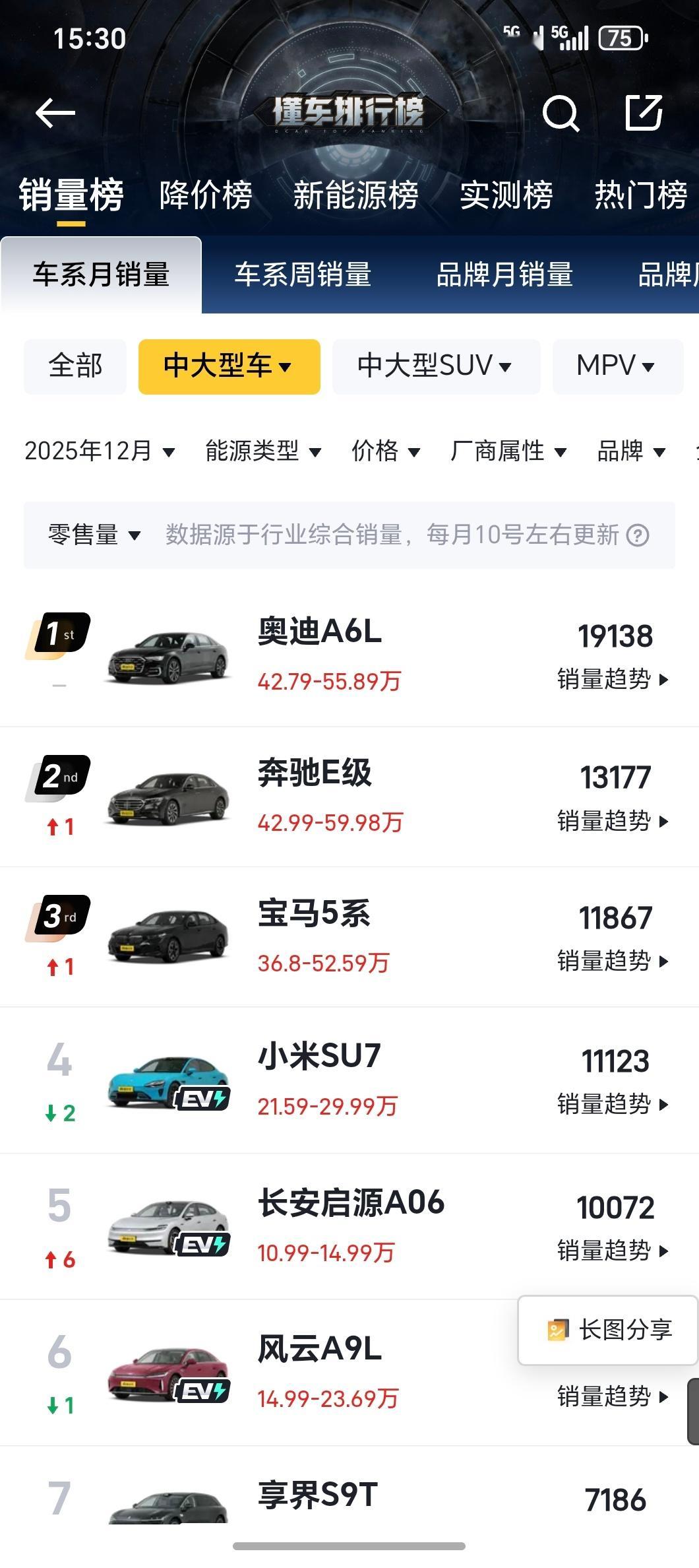发现一个挺有意思的现象这几年国产新能源突飞猛进尤其车越做越大,中大型的SUV和MPV头把交椅都是国产新能源唯有中大型的轿车还是BBA的天下2026年这个格局有没有可能变化大v聊车新能源汽车