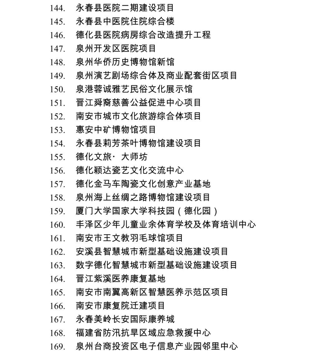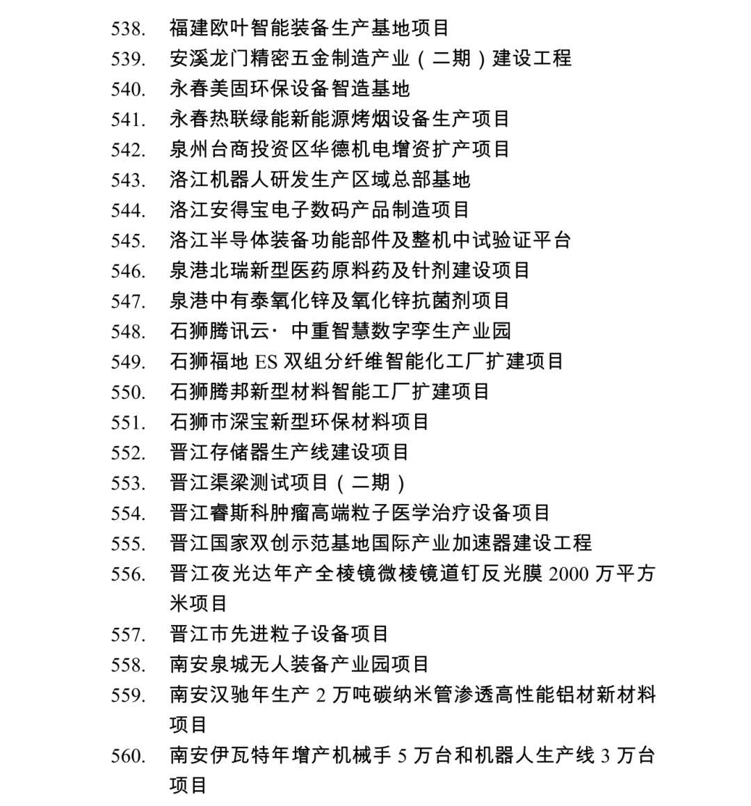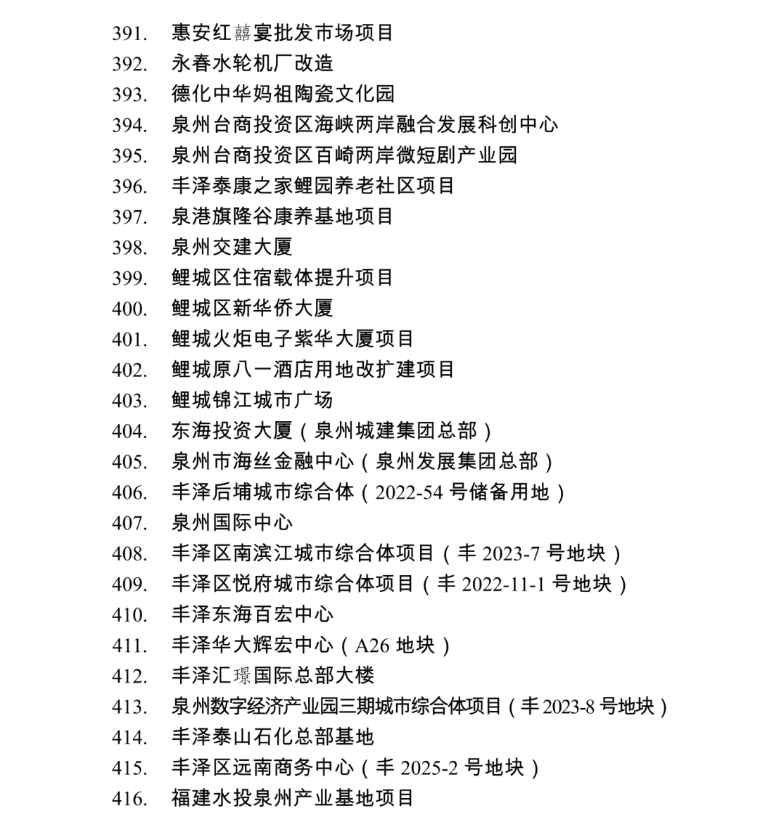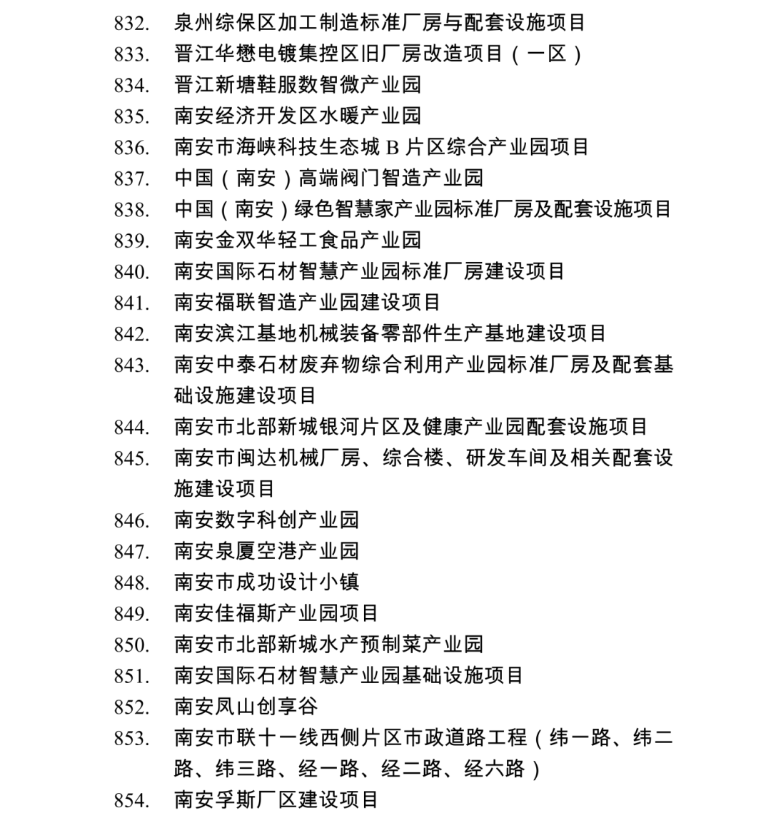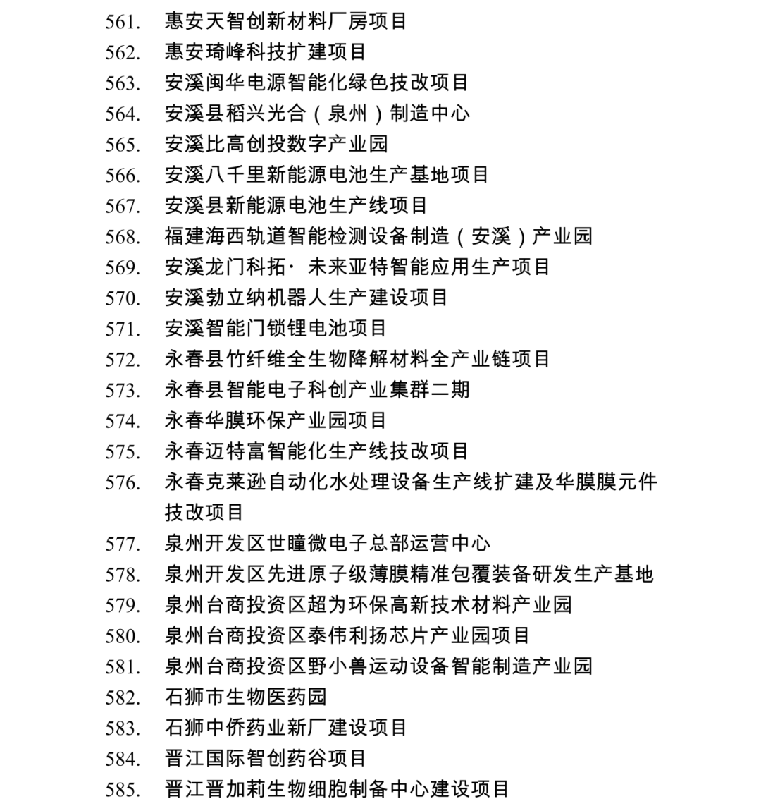 2026年度泉州市重点项目名单