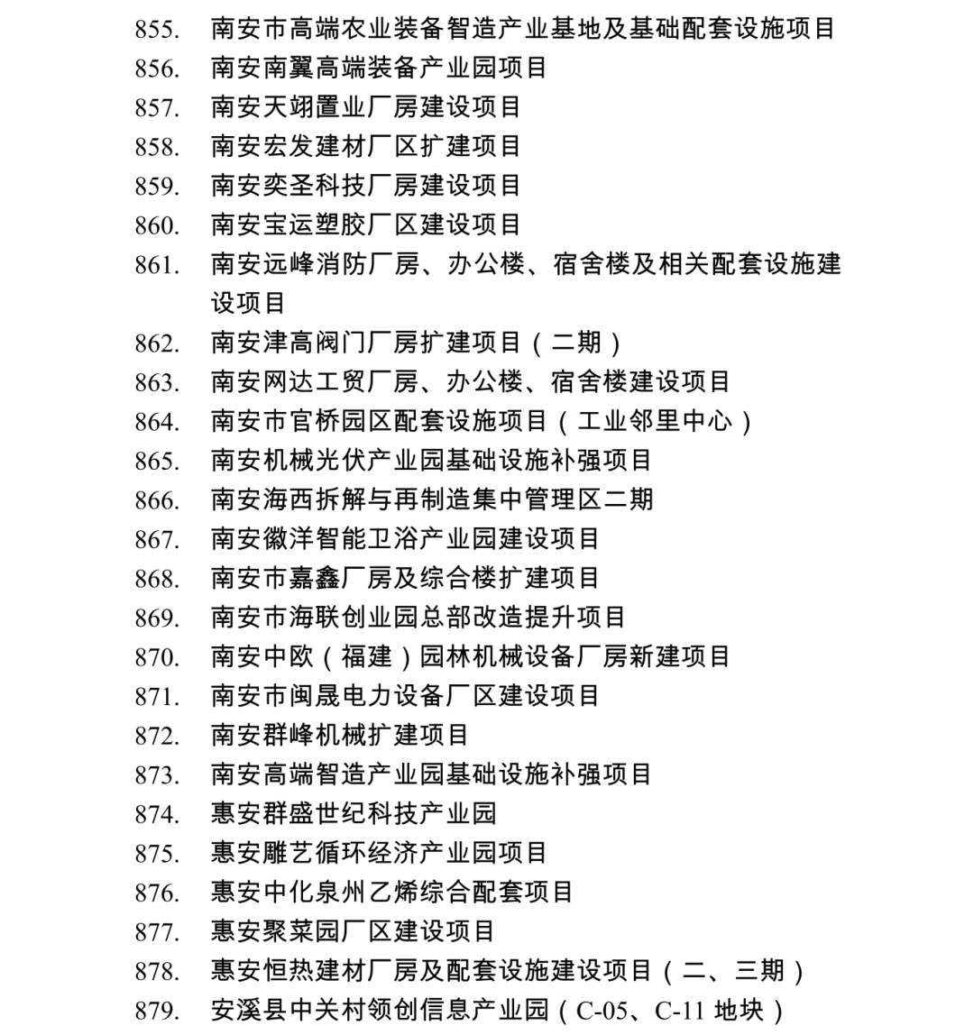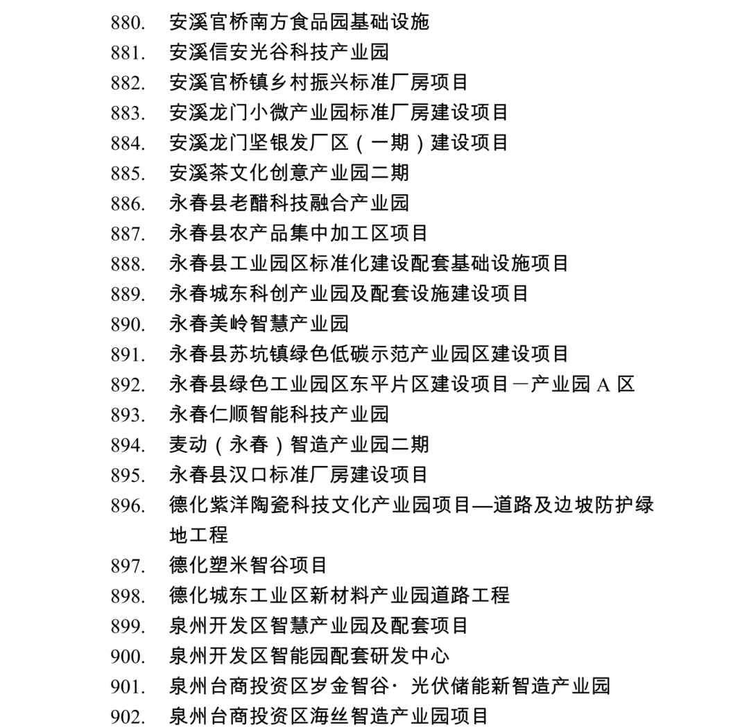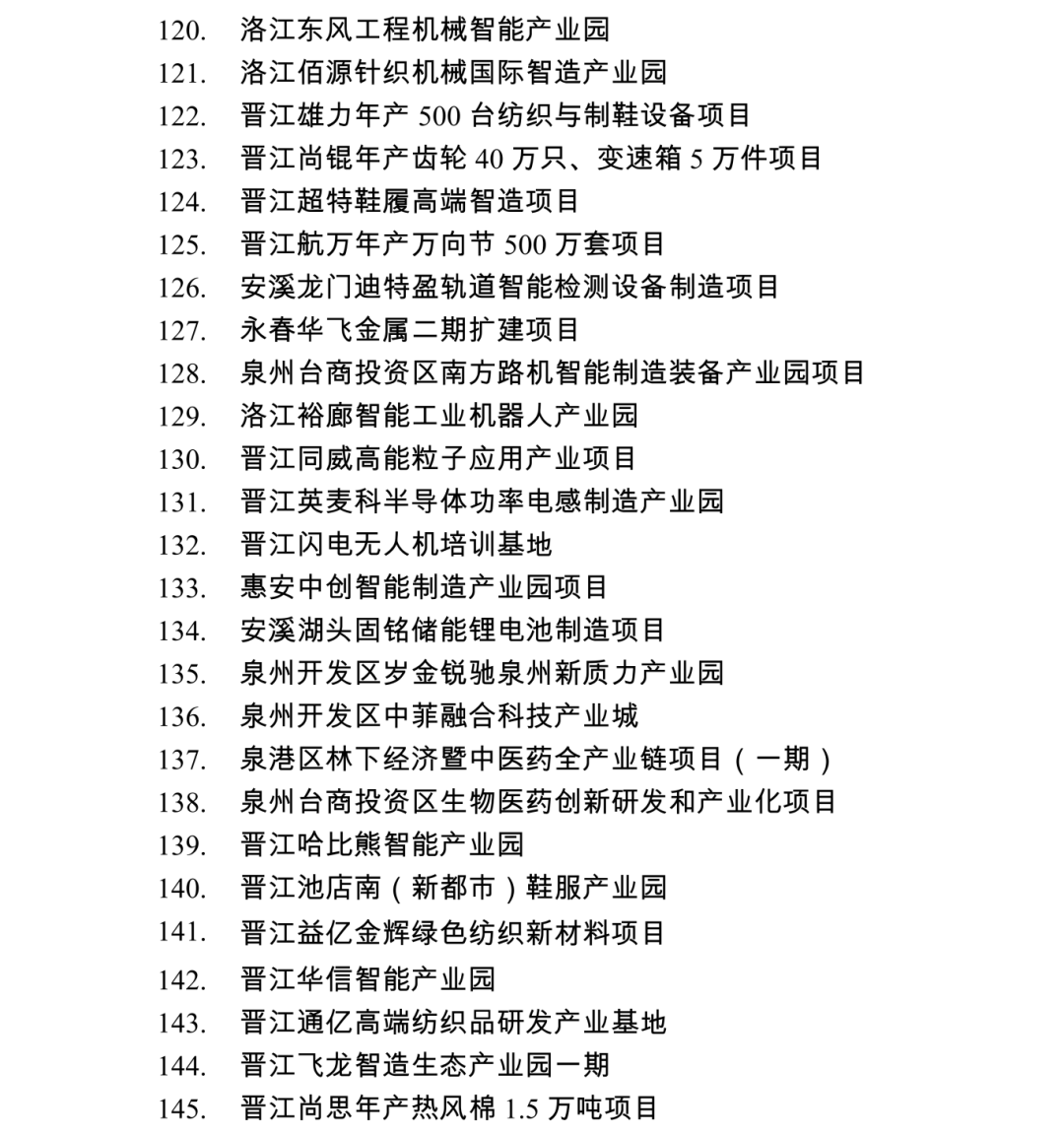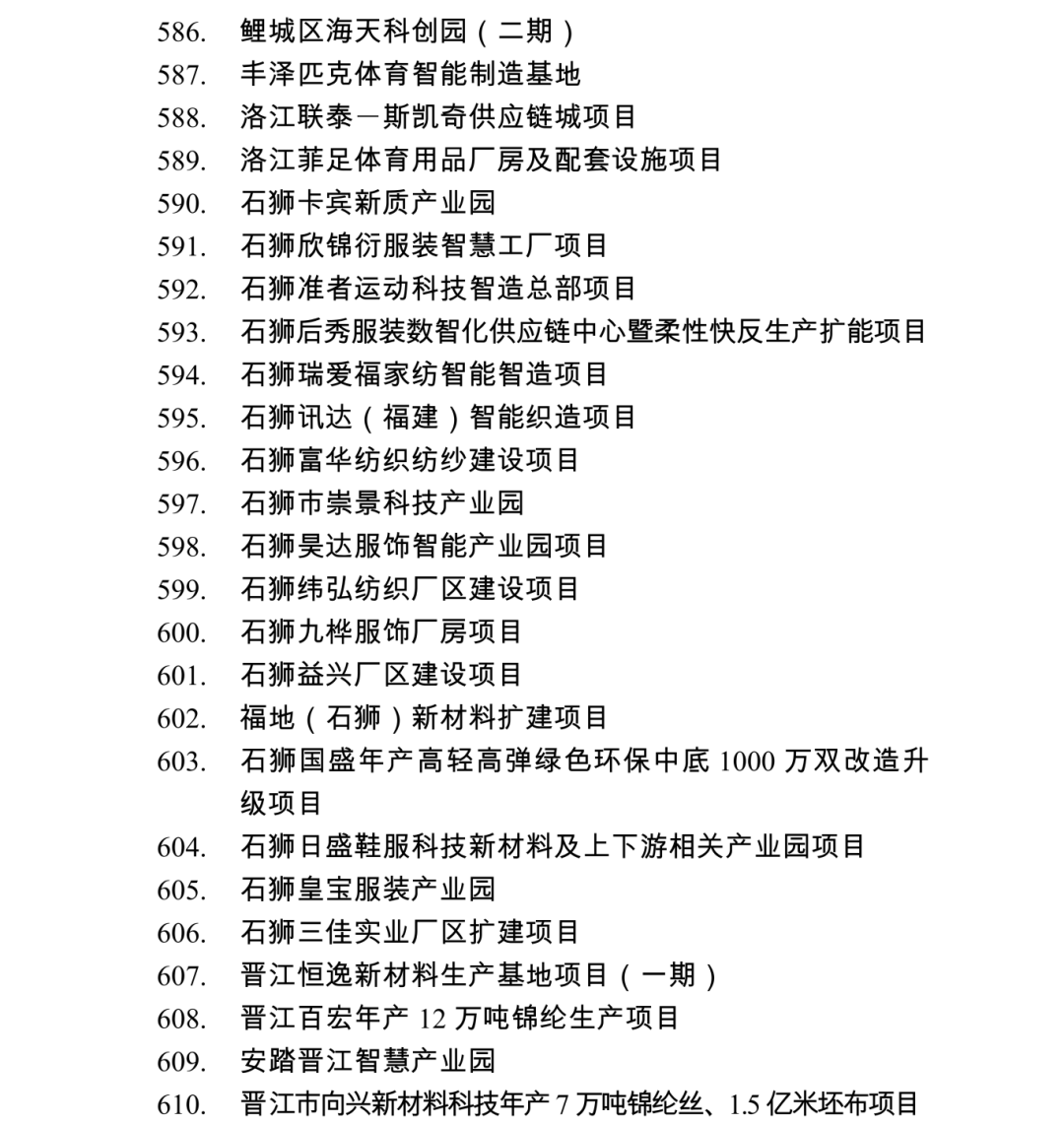 2026年度泉州市重点项目名单