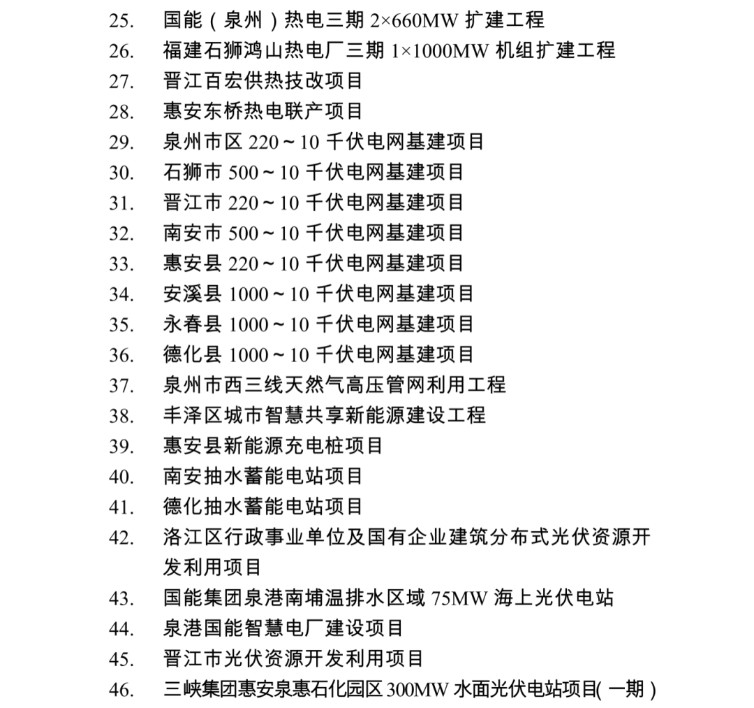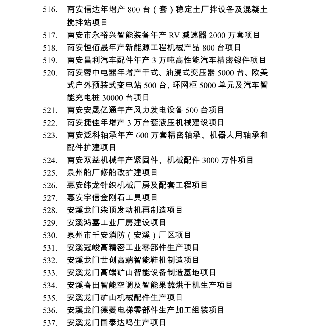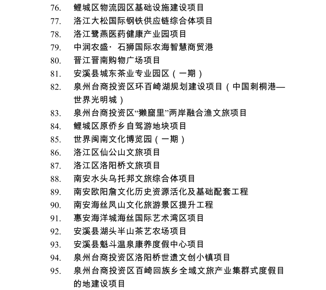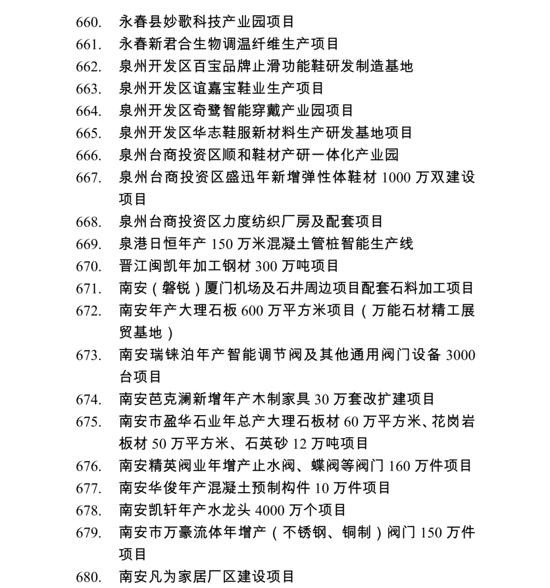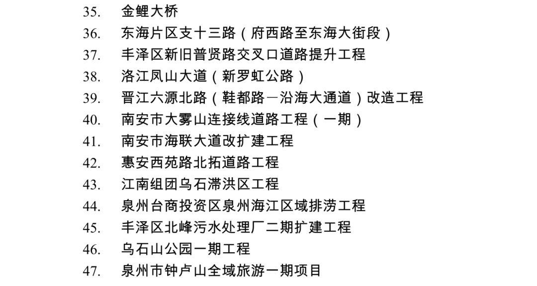 2026年度泉州市重点项目名单
