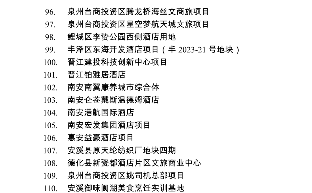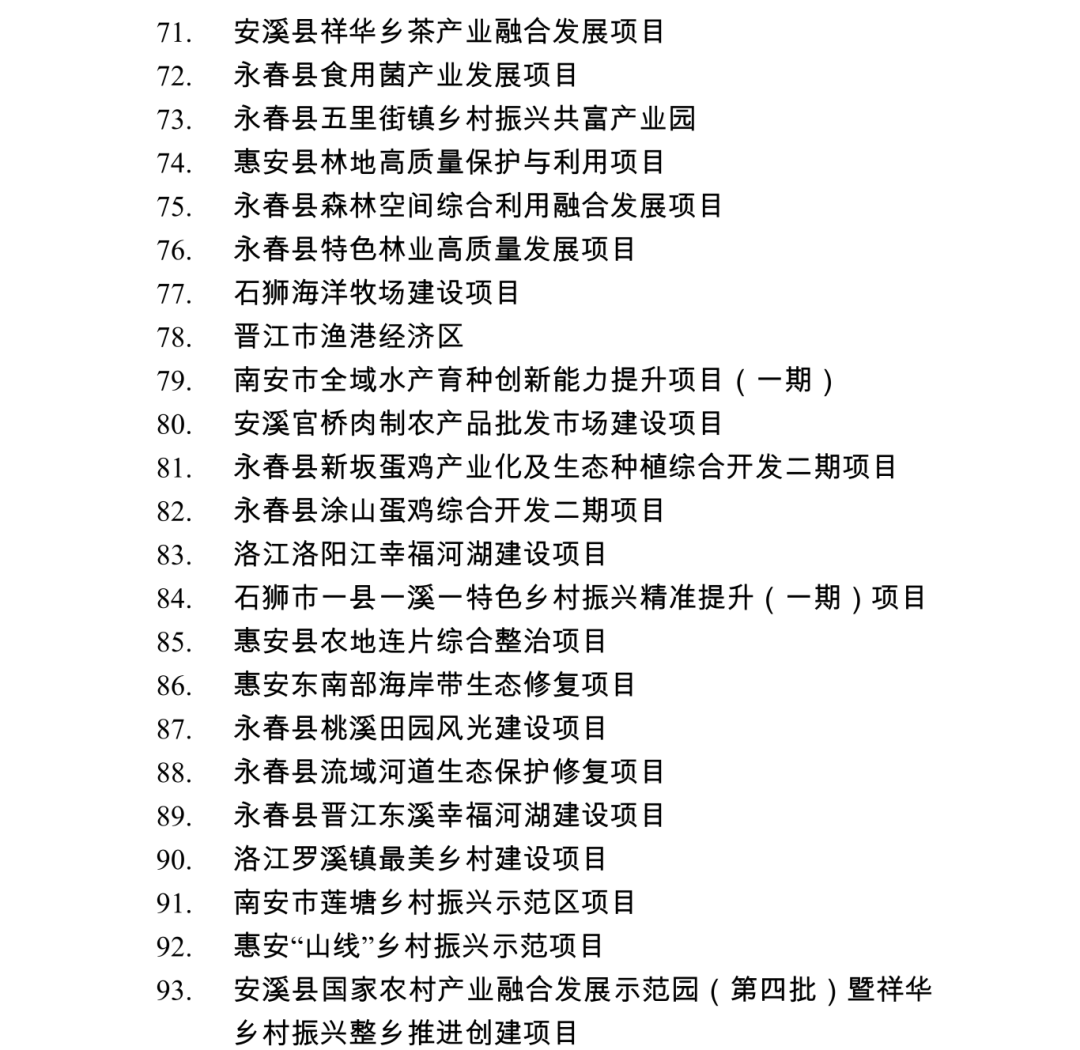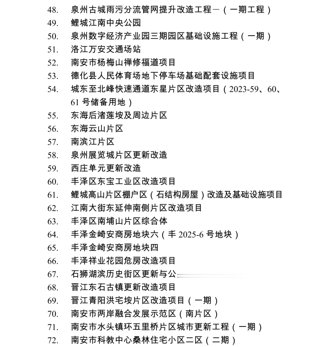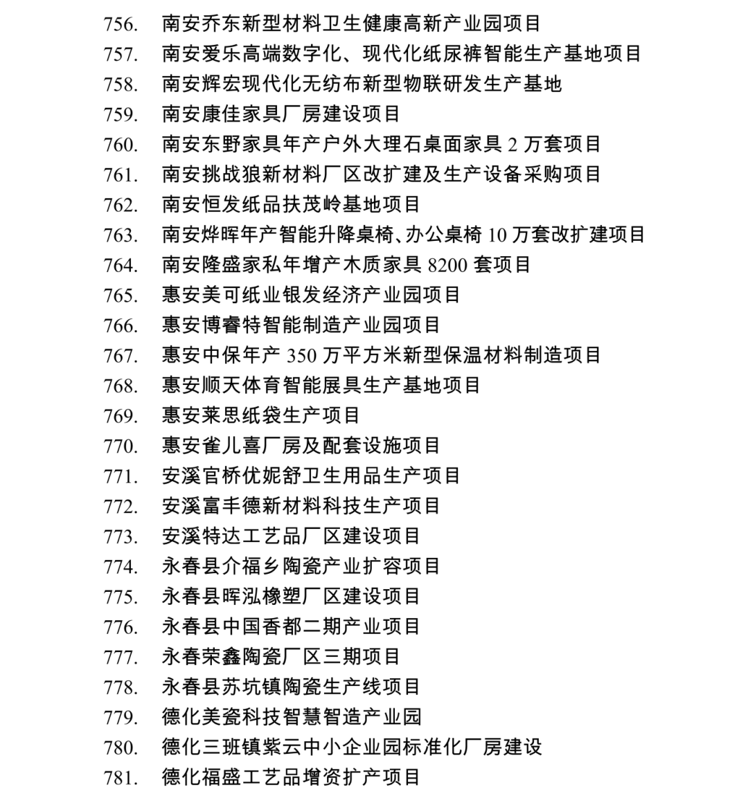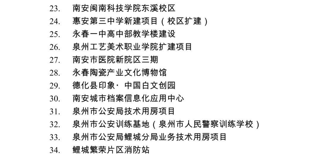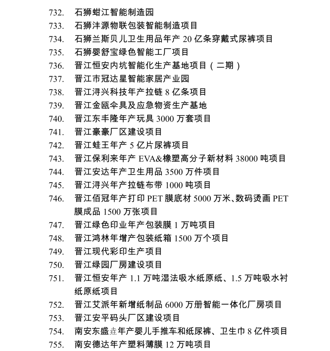 2026年度泉州市重点项目名单