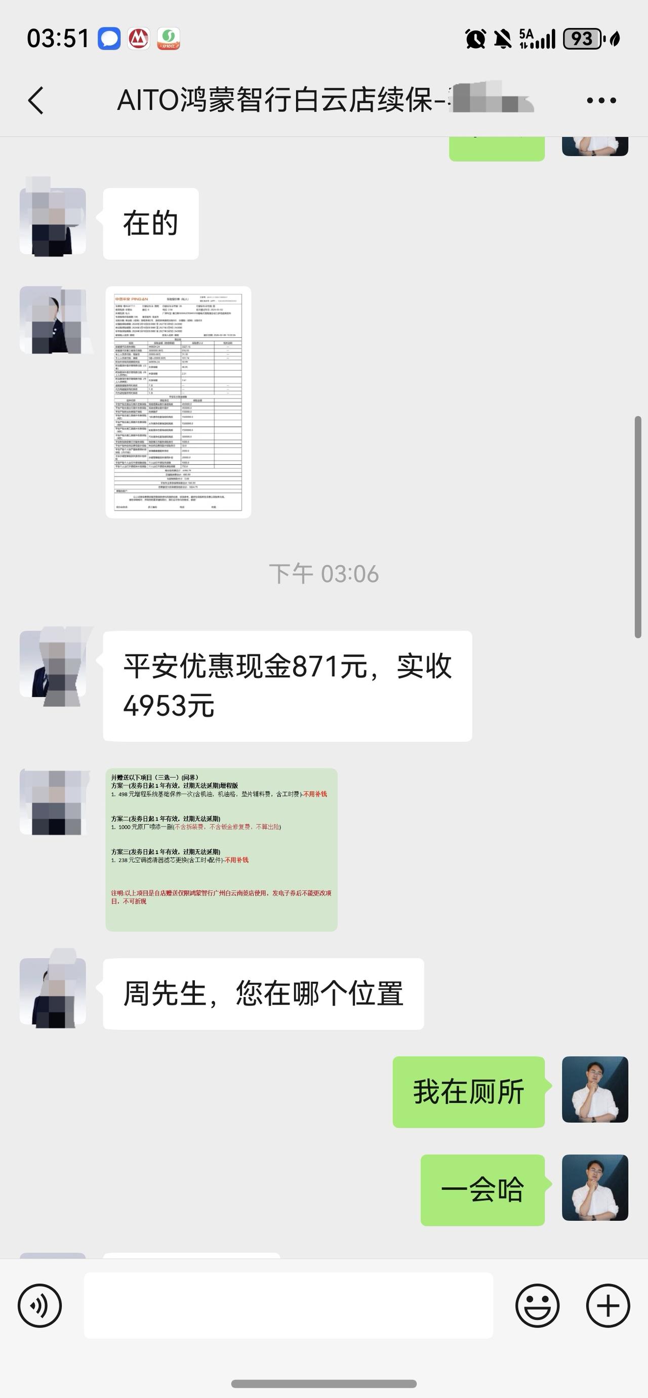 来鸿蒙智行做问界M9的保养,以及车险续保,年底太多车来做保养,很多车在排队,太夸张了! 不过效率挺高,晚上可以做完给我送上门。 我的保费,5千不到,而且还送一次保养,车漆,空调滤芯更换,三选一。我选了个车漆,把磕碰的地方修复一下!