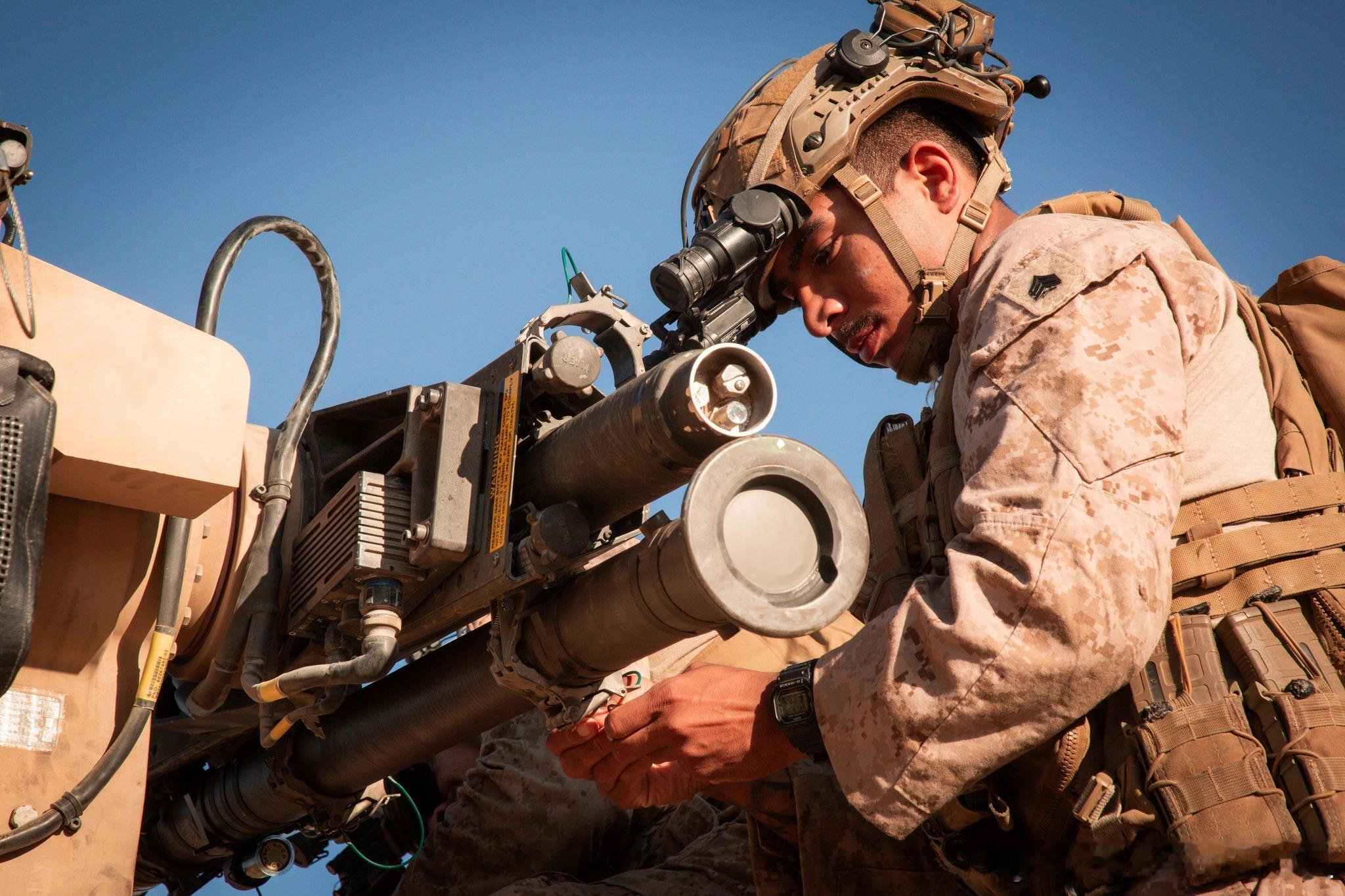 【作训】美海军陆战队濒海防空营支援美国陆军完成在国家训练中心的轮训△在去年的9月