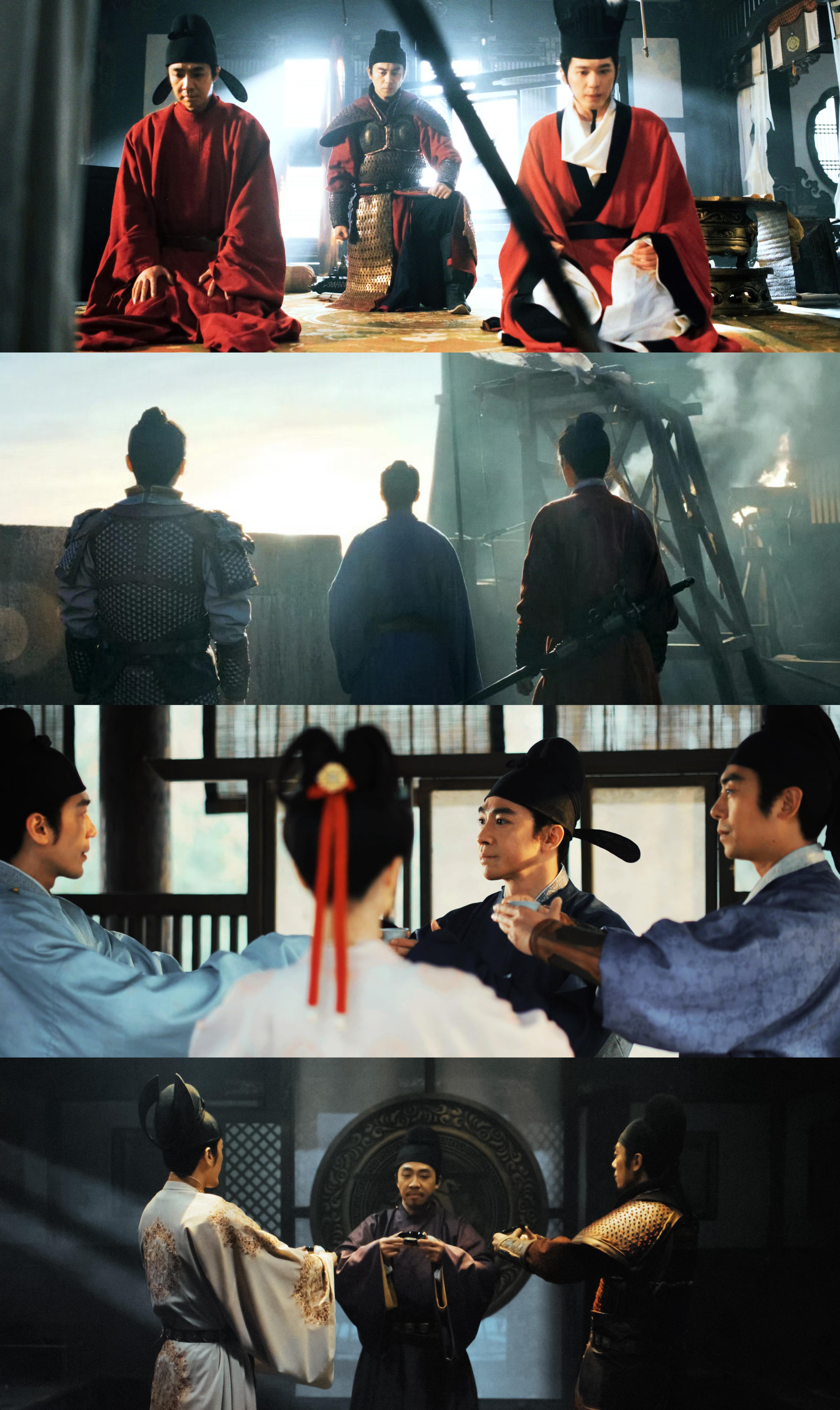 最开始安排三人去见石重贵何为天子这一幕,就是宿命感拉满的名场面!在城墙上一起看日出,“再不堪的乱世 也终会迎来日出。”他们就是破开黑暗的那道光。