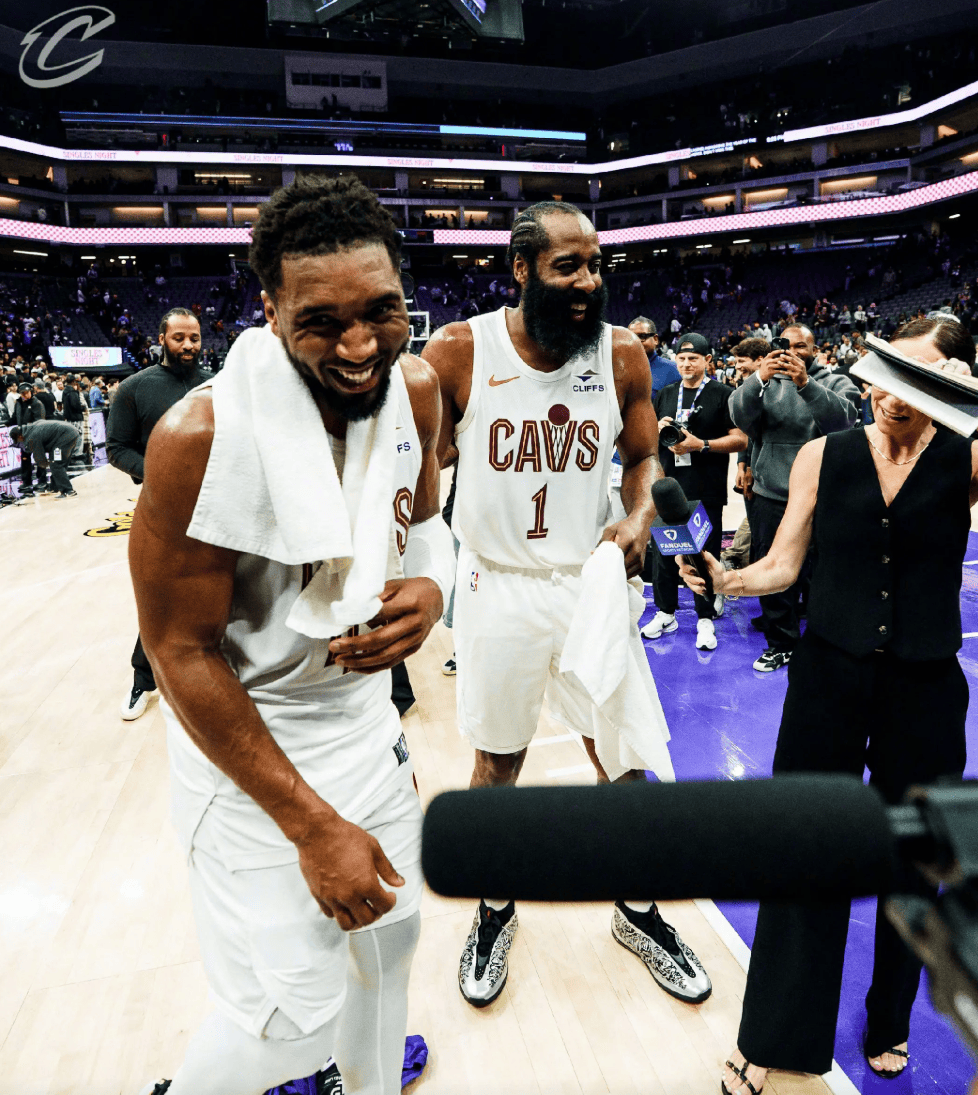 赛后,骑士社媒更新动态晒照庆祝胜利,并配文道:“给詹姆斯-哈登和多诺万-米切尔的组合起个名字吧!”