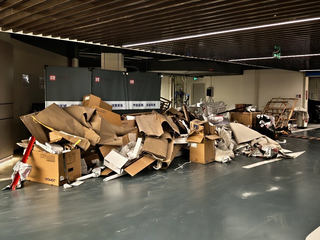这事儿,你咋评价呢?据说是前几天有人来检查,觉得垃圾桶这个位置不好看。物业用几个