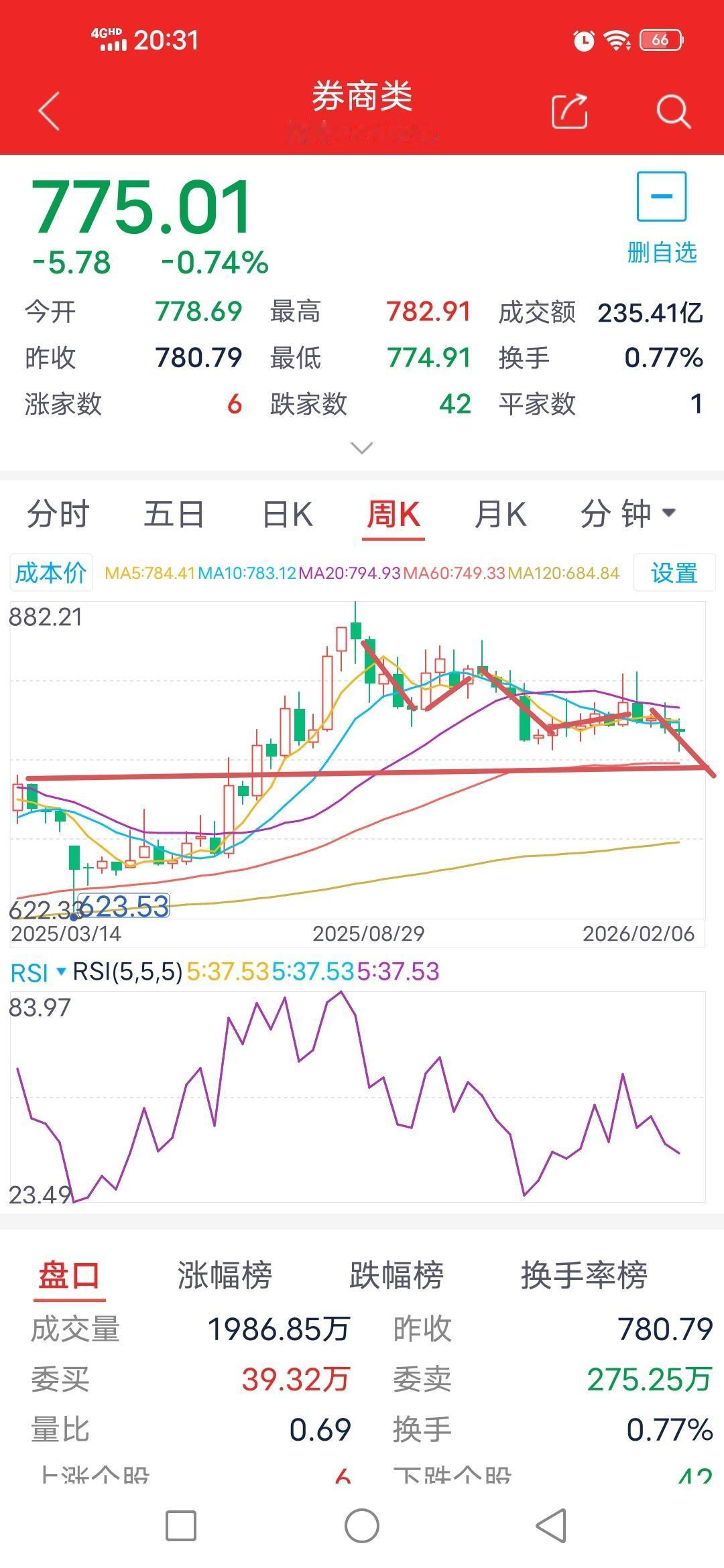 缩量调整!2月9日券商板块走势预测 上周五券商板块开盘报778.