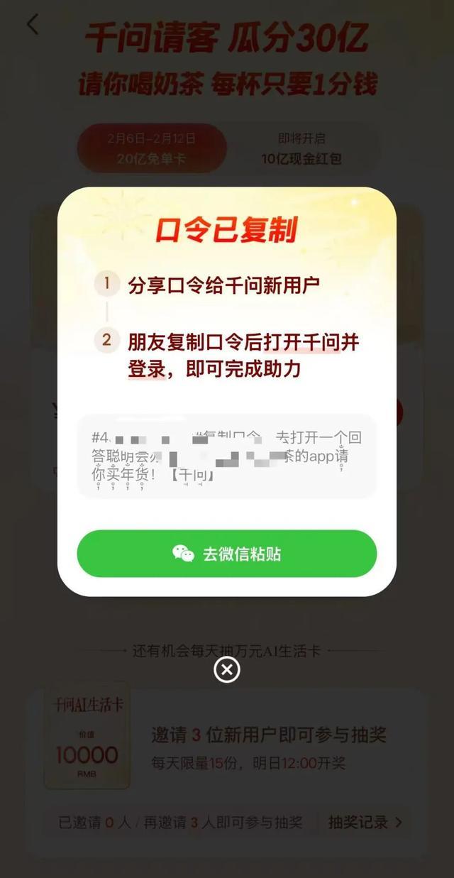 2月4日,微信发文,对元宝的违规链接进行处置,限制其在微信内直接打开。2月6日,千问活动口令也被微信屏蔽。