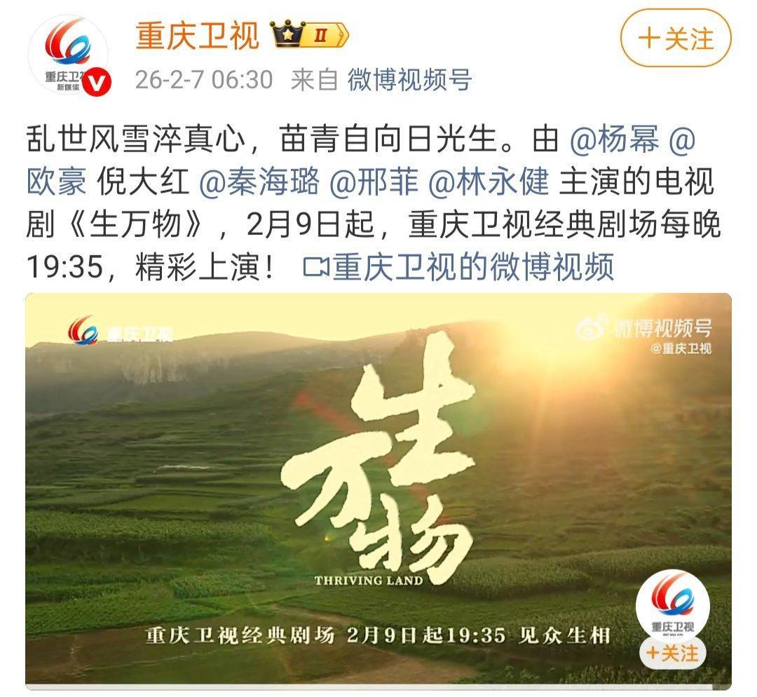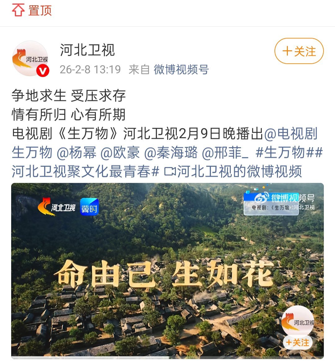 2.9 重庆、河北卫视2.11 山东卫视 大爆剧生万物央卫都喜欢