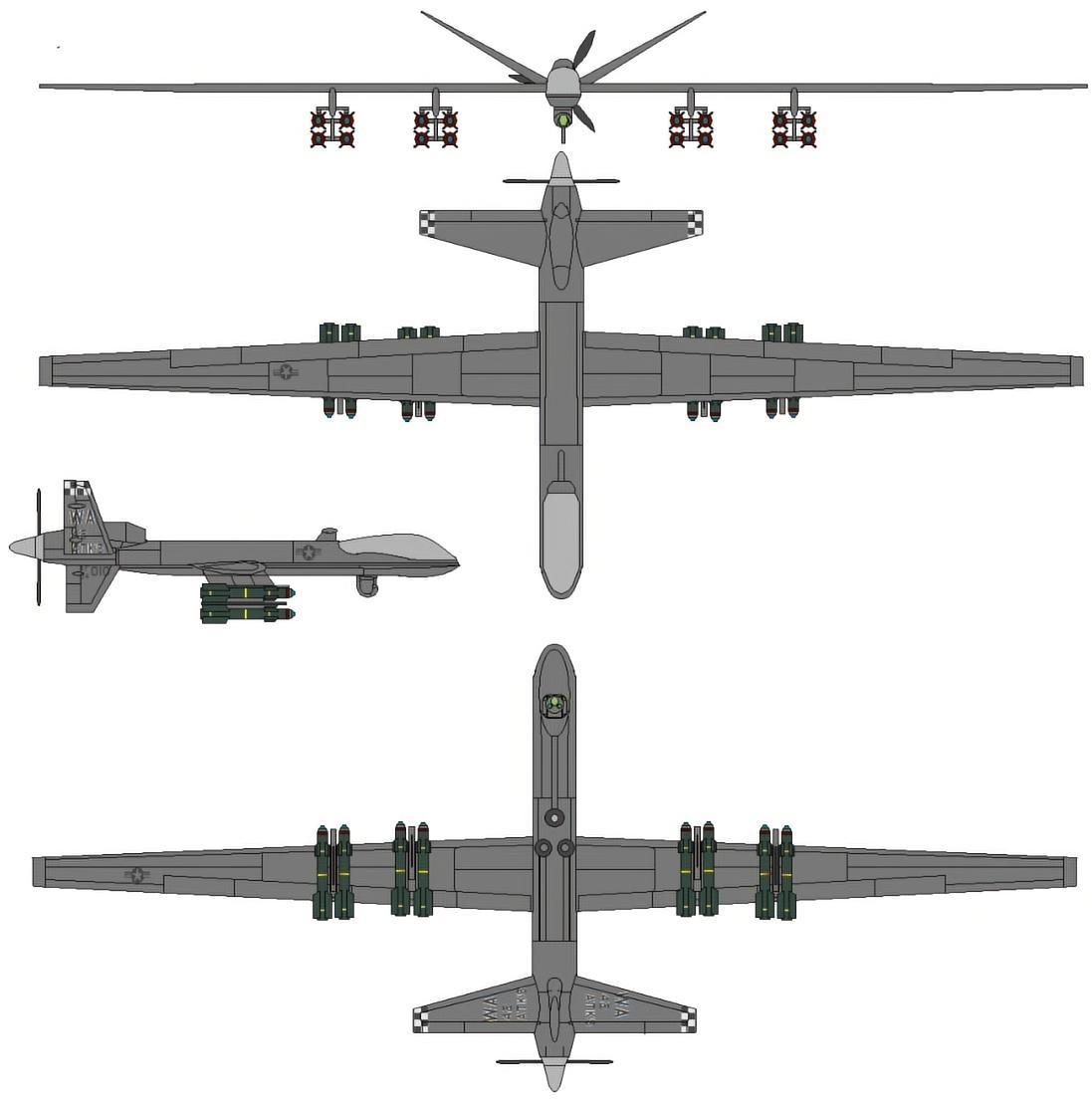 MQ-9无人机被设计成主要为地面部队提供近距空中支援的攻击型无人机,此外还可以在危险地区执行持久监视和侦察任务。该机装备有先进的红外设备、电子光学设备,以及微光电视和合成孔径雷达,拥有不俗的对地攻击能力,并拥有卓越的续航能力,可在战区上空停留数小时之久。此外,MQ-9无人机还可以为空中作战中心和地面部队收集战区情报,对战场进行监控,并根据实际情况开火。相比MQ-1无人机,MQ-9无人机的动力更强,飞行速度可达MQ-1无人机的3倍,而且拥有更大的载弹量。