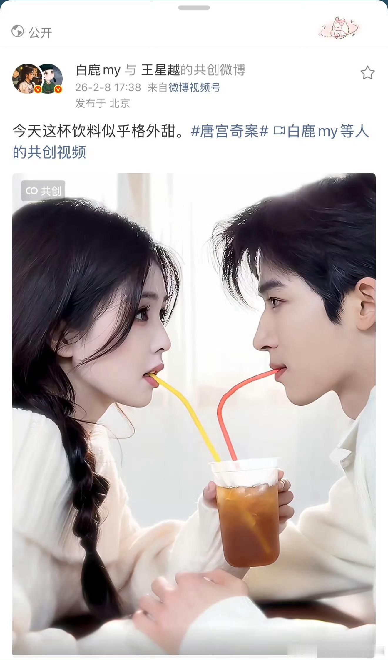 唐宫奇案之青雾风鸣 我的评分:白鹿王星越喝同一杯饮料唐宫奇案👖《唐宫奇案》持续热播中!与王星越同框发糖超甜,李青仪打戏超燃,速来👖解锁精彩剧情!
