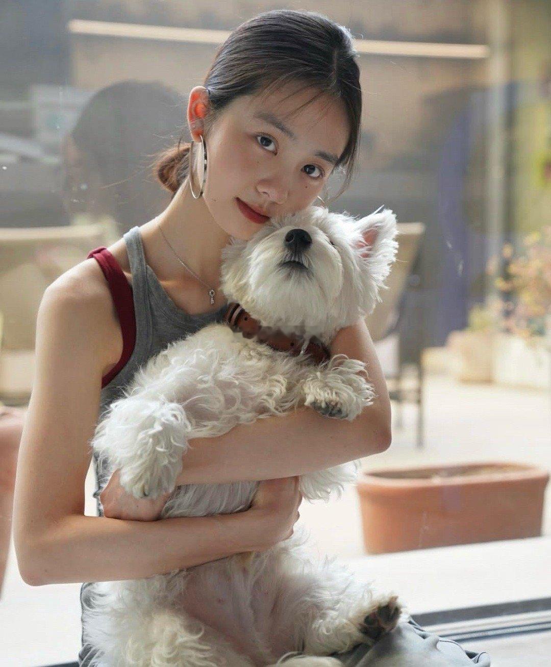 跟小狗在一起就是可可爱爱的小姑娘,斜肩黑色礼服一穿,就是气质优雅的少女,可塑性极