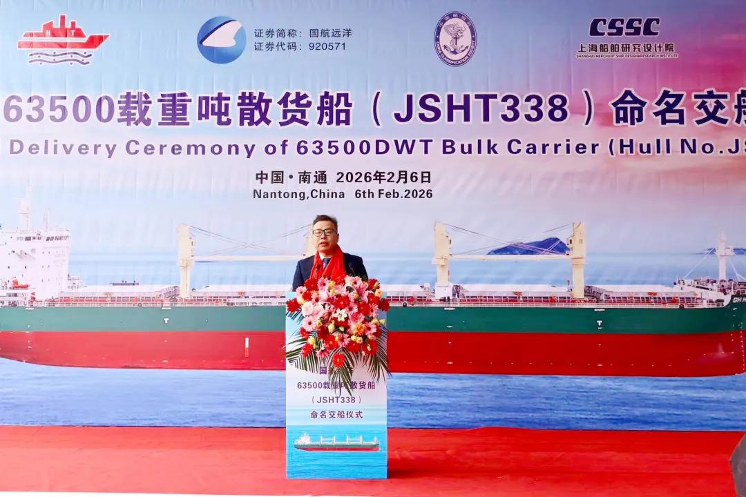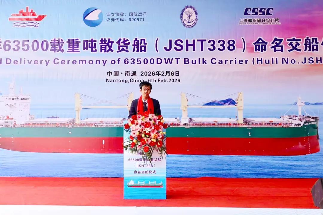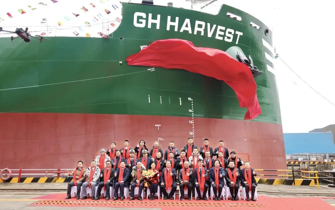据现场信息,“GHHARVEST”轮为63,500DWT系列散货船的第二艘。回溯该系列合作进程:自2024年7月国航远洋与造船方签署订单,到2026年1月首艘“GHPRIDE”轮交付,再到2月6日“GHHARVEST”轮完成交付——该系列新船按节点推进、连续兑现。