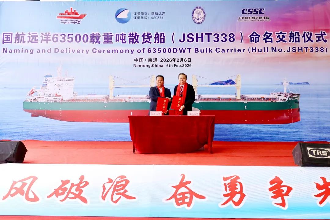 值得关注的是,按照披露数据,国航远洋已在该船厂新造8艘船舶。双方在项目推进过程中围绕工期、技术与质量控制紧密协作,严格把控生产节点;两艘63,500DWT新船均实现“按时、按质、按量”交付,为当前造船与航运协同发展提供了一个高效率样本。