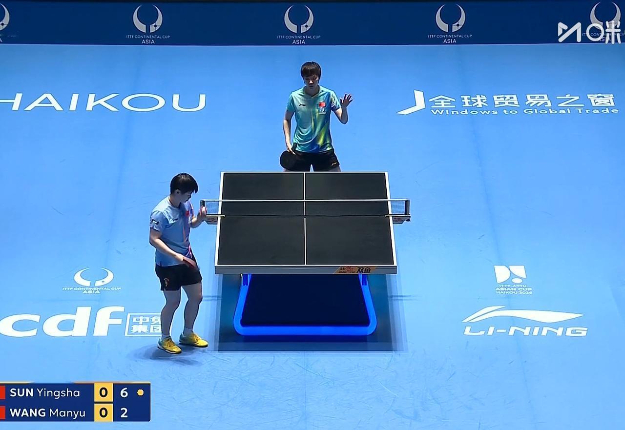 鳗鱼发球,球迷乱喊, 孙颖莎仗义抬手制止。 孙颖莎发球,球迷乱喊, 鳗鱼仗义抬手制止。 两个人都很仗义! 第一局 孙颖莎打发抢和相持, 6:1领先。 9:2领先。 10:2拿到局点, 11:2拿下 孙颖莎在自己发球轮, 基本都得分了, 而鳗鱼的反手优势没出来。