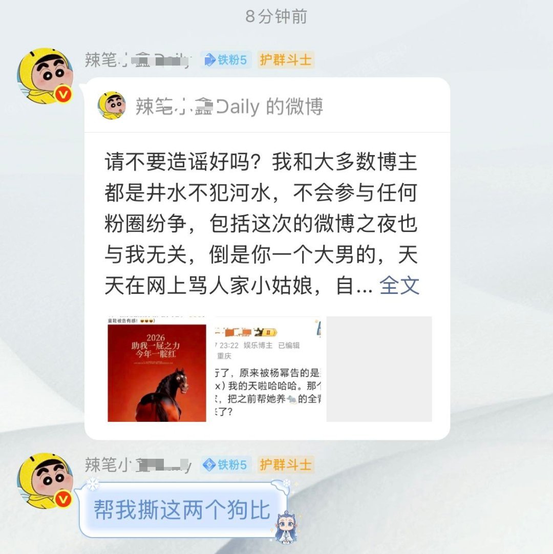 自己不学好,造谣杨幂被告了好意思在这说自己是小姑娘吗?要多上几次被告席才能当明白yxh的话,那还是别明白的好,群里引导人撕别人,表面装什么🍵了