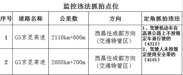 此外,G05京昆高速(雅西段)将启用一批交通技术监控设备,具体如下: