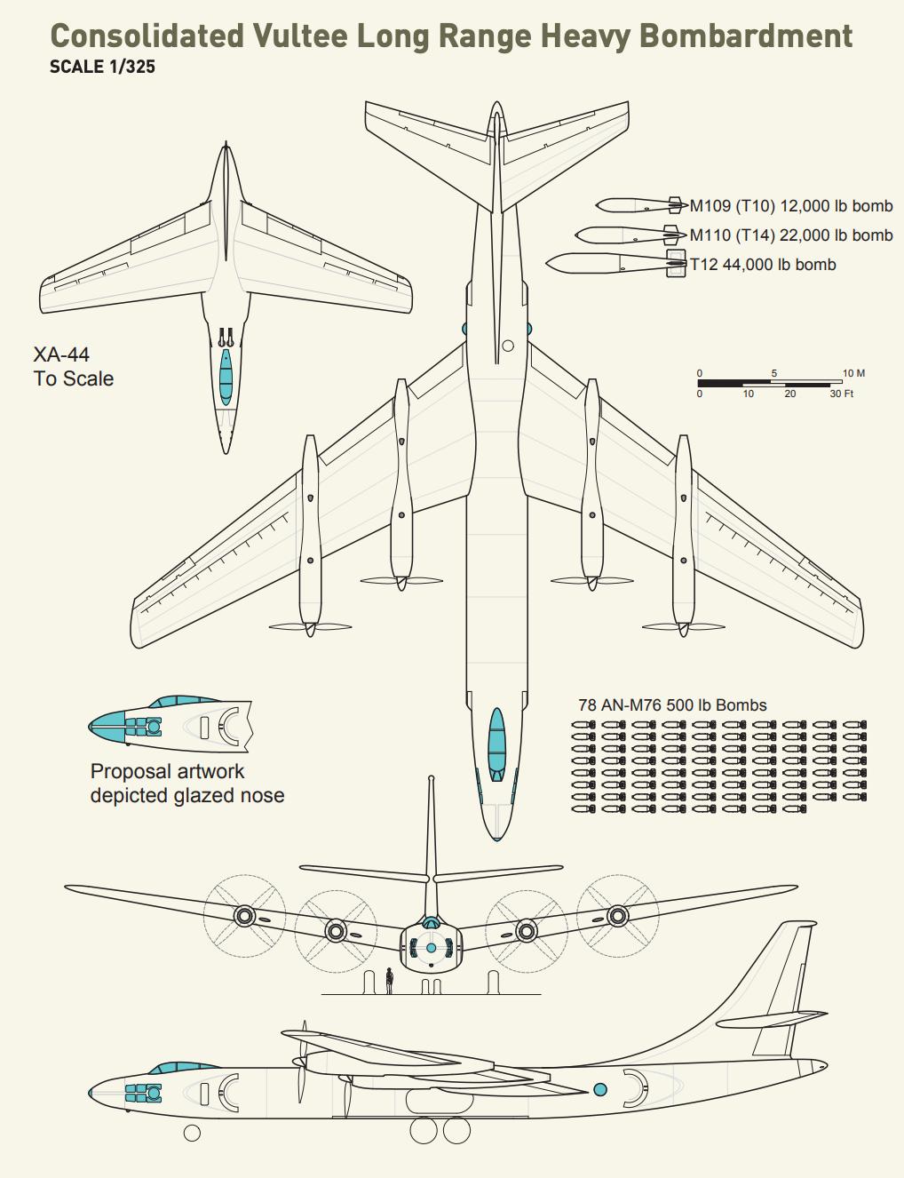 426总重量360,000磅(163,296公斤),预估作战半径为3,110英里(5,004公里),可携带4,536公斤炸弹,但远未达到要求,尽管在三份方案中是最好的。可选载荷包括一枚44,000磅(19,958公斤)“大满贯”炸弹。两枚22,000磅炸弹,三枚12,000磅炸弹,九枚4000磅炸弹,24枚2000磅炸弹,50枚1000磅炸弹或84枚500磅炸弹。462的另一个问题是满载下飞机无法达到35,000英尺(10,668米)作战高度。