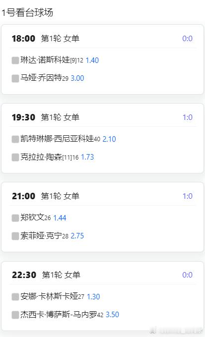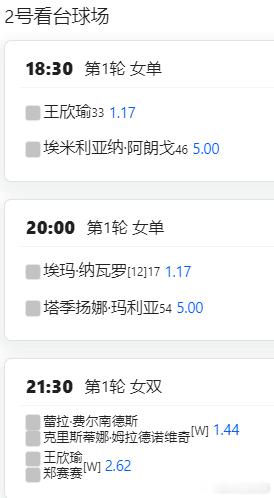 王欣瑜2号球场第一场,18:30开始;