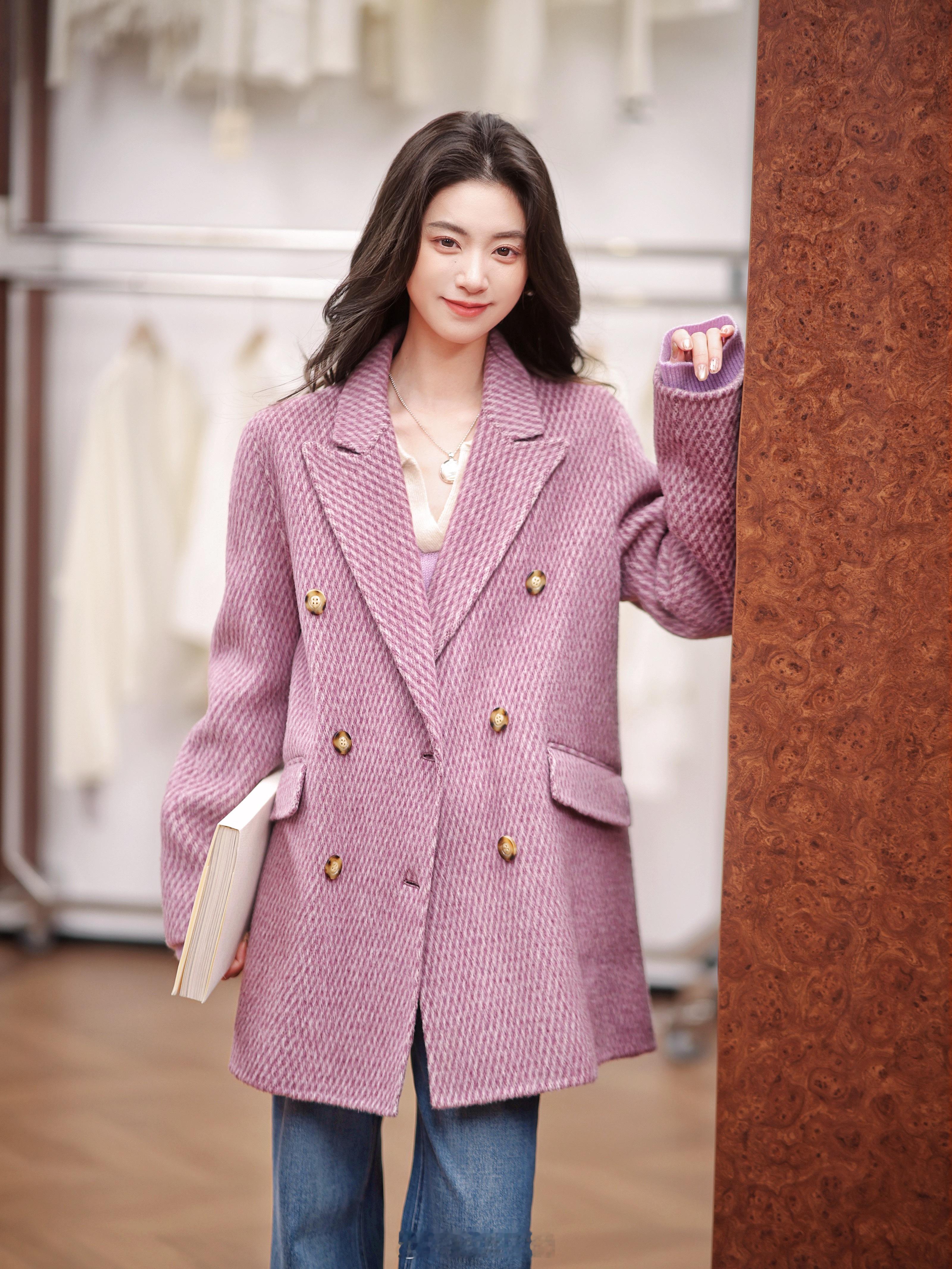 明媚利落又大方~这件羊驼毛*羊毛大衣很不错吧 斜纹肌理的 也不会单调喜欢的姐妹 今晚播播间蹲哦