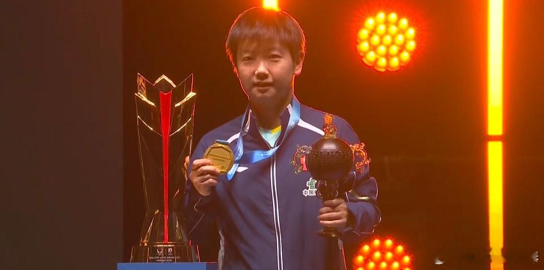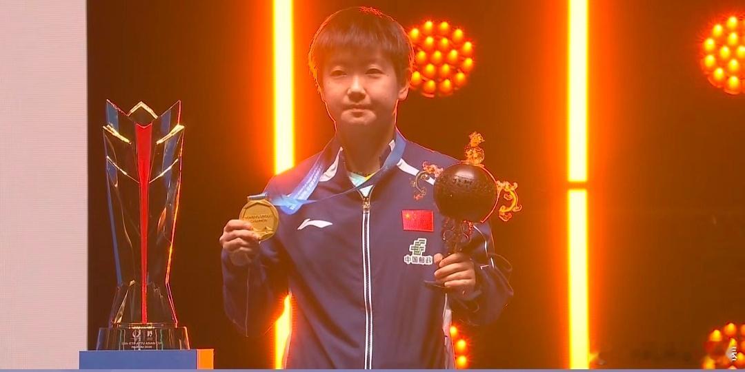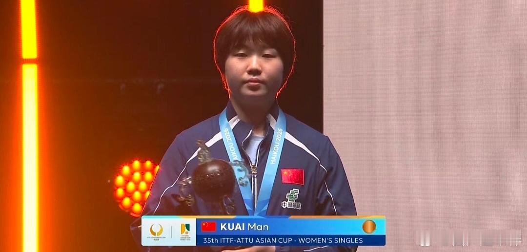 第35届国际乒联-亚乒联盟亚洲杯女单冠军孙颖莎,亚军王曼昱,第三名蒯曼。三面国旗