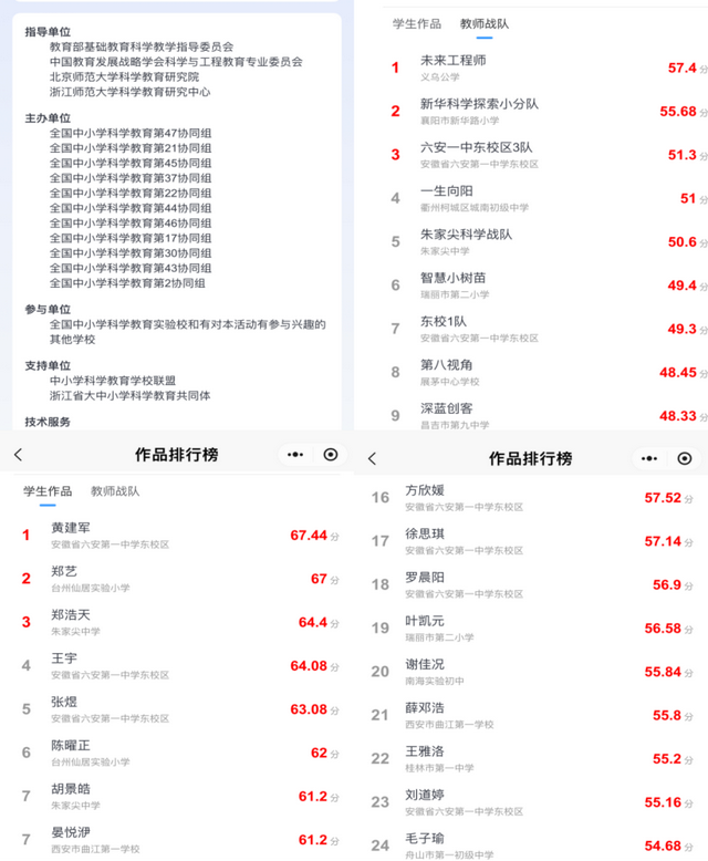 教师组比拼同样精彩,学校组建的两支教师队伍尽显专业实力:东校区3队斩获全国第3名,东校1队以自评分满分100分、互评分91.6分的优异成绩位列全国第7名。