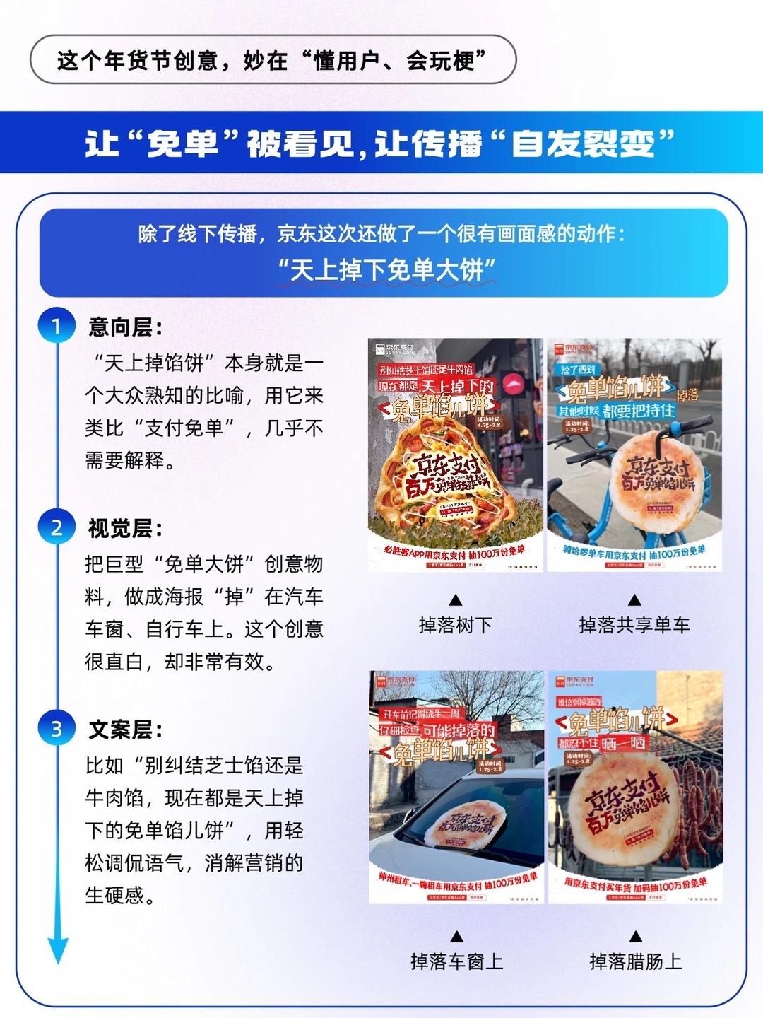 ✅这背后,是一套清晰而轻盈的传播逻辑:通过可感知、可参与、可记忆的创意触点,把“京东支付百万份免单”悄然种进用户心里[赞R]
