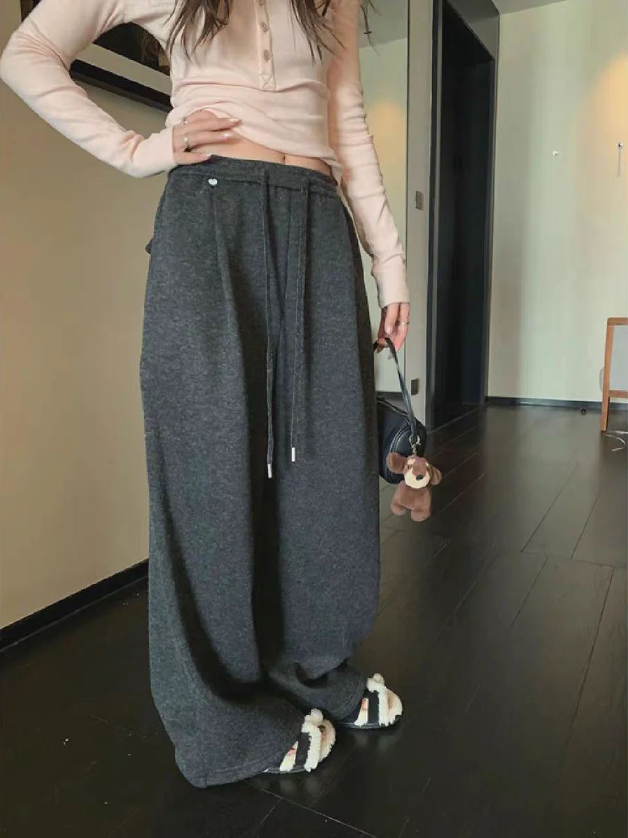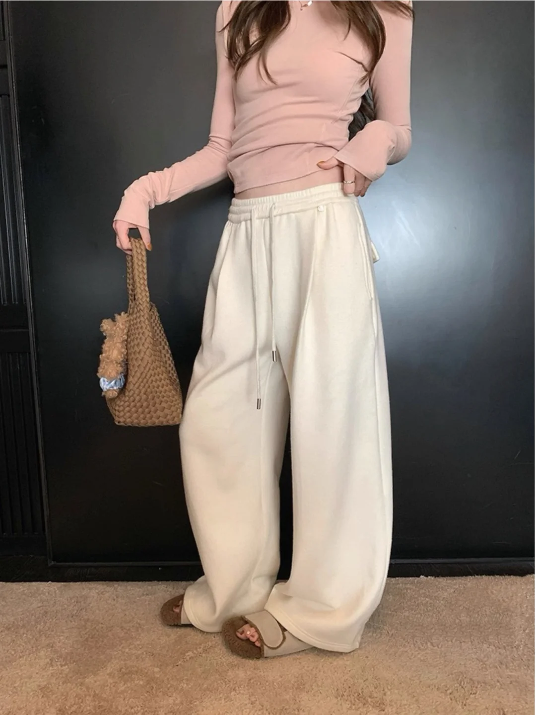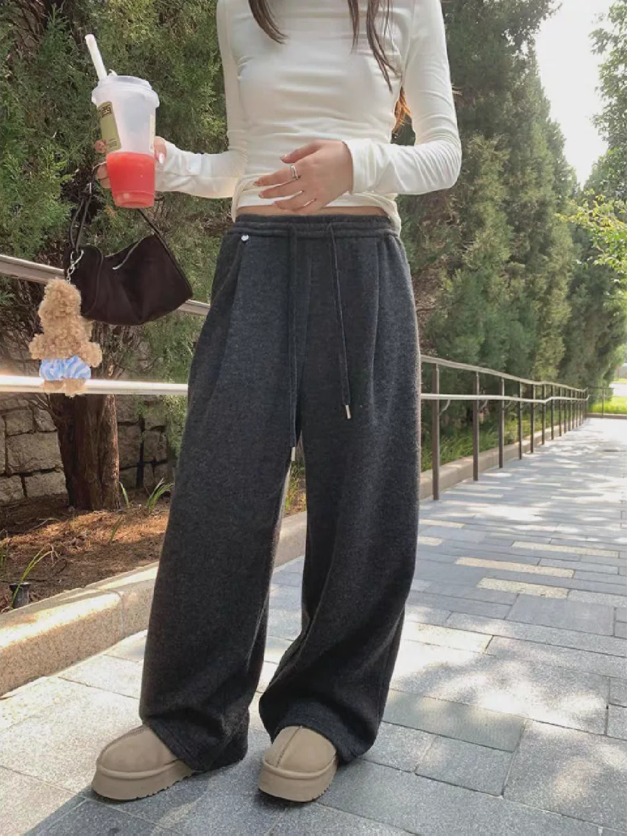 这条裤子真的是梨形身材的福音!高腰设计瞬间拉长比例,宽松版型藏肉一绝~ 羊毛卷的面料手感软fufu的,抽绳可以自由调节腰围,跑步健身都能穿! 休闲又时尚,搭配卫衣或T恤都超有韩系氛围感✨