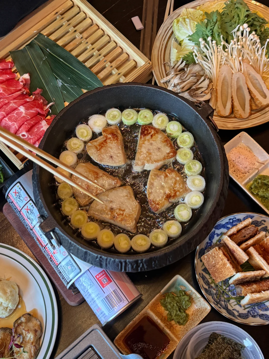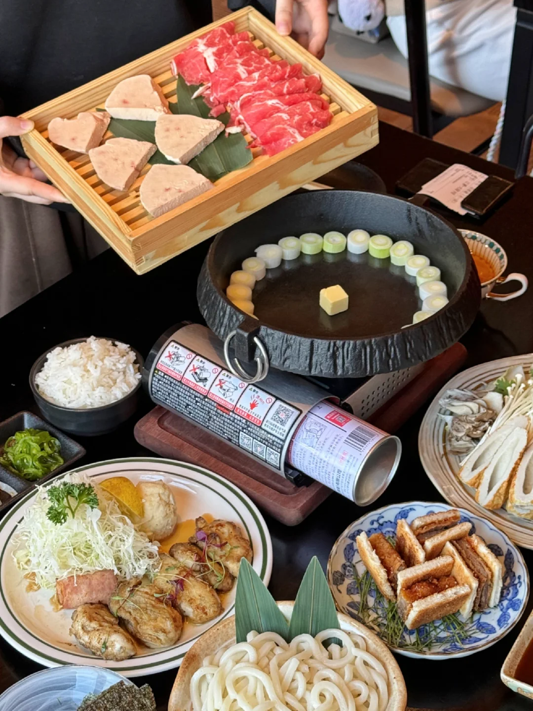 谁懂啊!在楢鸟·围炉居酒屋 一边围炉煮食一边看江景, 落日→夜景全程美到失语✨ 🍲鹅肝牛肉寿喜烧 双吃法直接锁死! 海苔裹着鹅肝牛肉一口爆香 加寿喜汁变身暖锅,涮蔬菜吸满汤汁 暖乎乎的超适合冬天 🥩肉肉没大米(新品) 肉控狂喜新品!无米纯肉暴击,越嚼越上头 🦪黄油牡蛎 黄油焦香裹着牡蛎鲜甜 配米饭直接炫一碗,鲜掉眉毛 🍞牛肉三明治 外酥里嫩,厚切牛肉汁水爆棚,口感超丰富 暖黄灯光+全景落地窗 约会、小聚、微醺都适配 窗边位记得提前预约哦 📍楢鸟·围炉居酒屋(天一店)