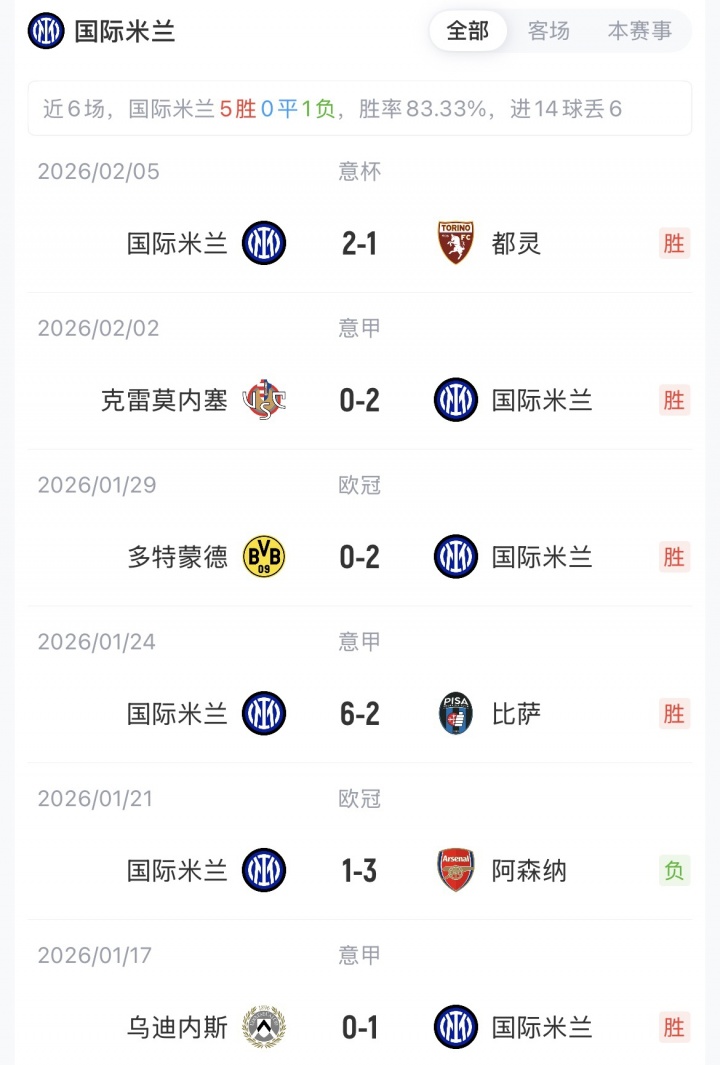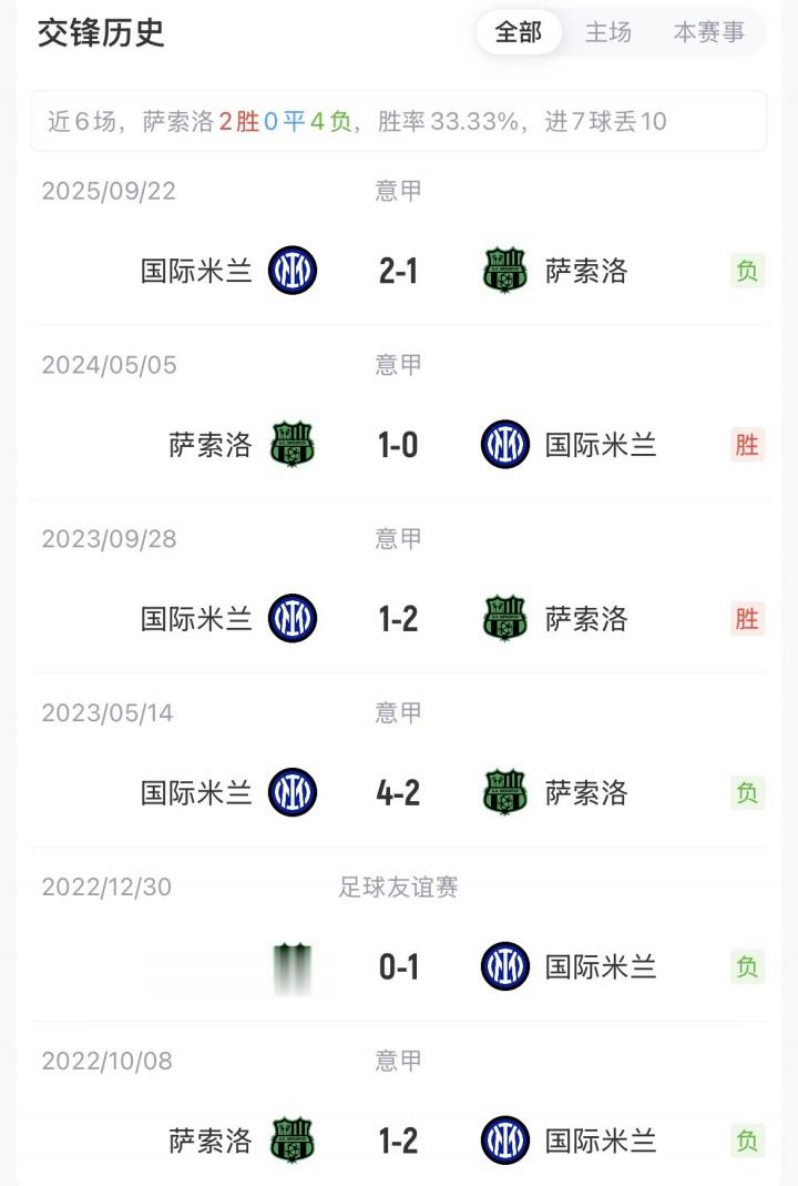 国米目前以5分优势领跑意甲,萨索洛29分暂排第十一名。赛季首次交手,国米主场2-1战胜萨索洛。