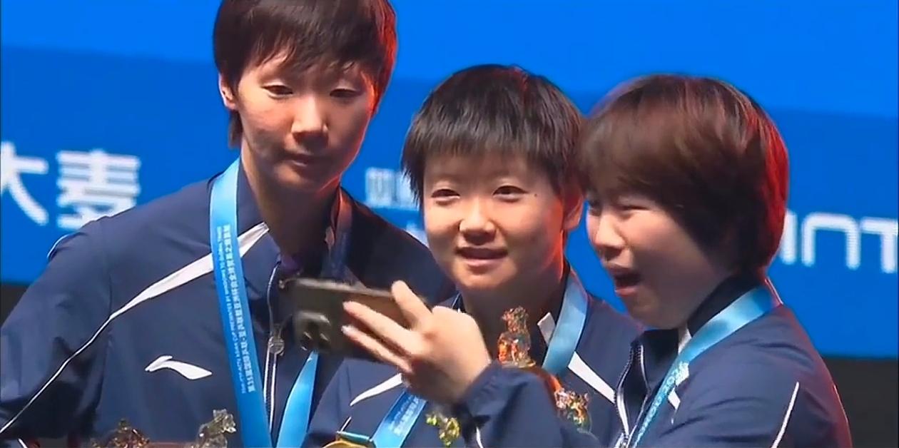 三人在领奖台上自拍的欢乐瞬间... ★孙颖莎: 嘴角上扬,眼神清澈,微微一笑,阳光灿烂,此刻的她正处在夺冠后的兴奋中,享受着属于她的胜利时刻。 ★王曼昱: 表情平静而内敛,紧闭嘴唇,目光恍惚,此刻的她满是遗憾,尽管是亚军,但是还未缓过神,毕竟刚才拿到过赛点,曾离冠军只有一球之差... ★蒯曼: 搞怪的蒯曼,尽管只是第三名,却也是非常开心的,此刻的她只想拍出美美的三人合影,夸张的表情是在告诉大家,拍的太丑了...