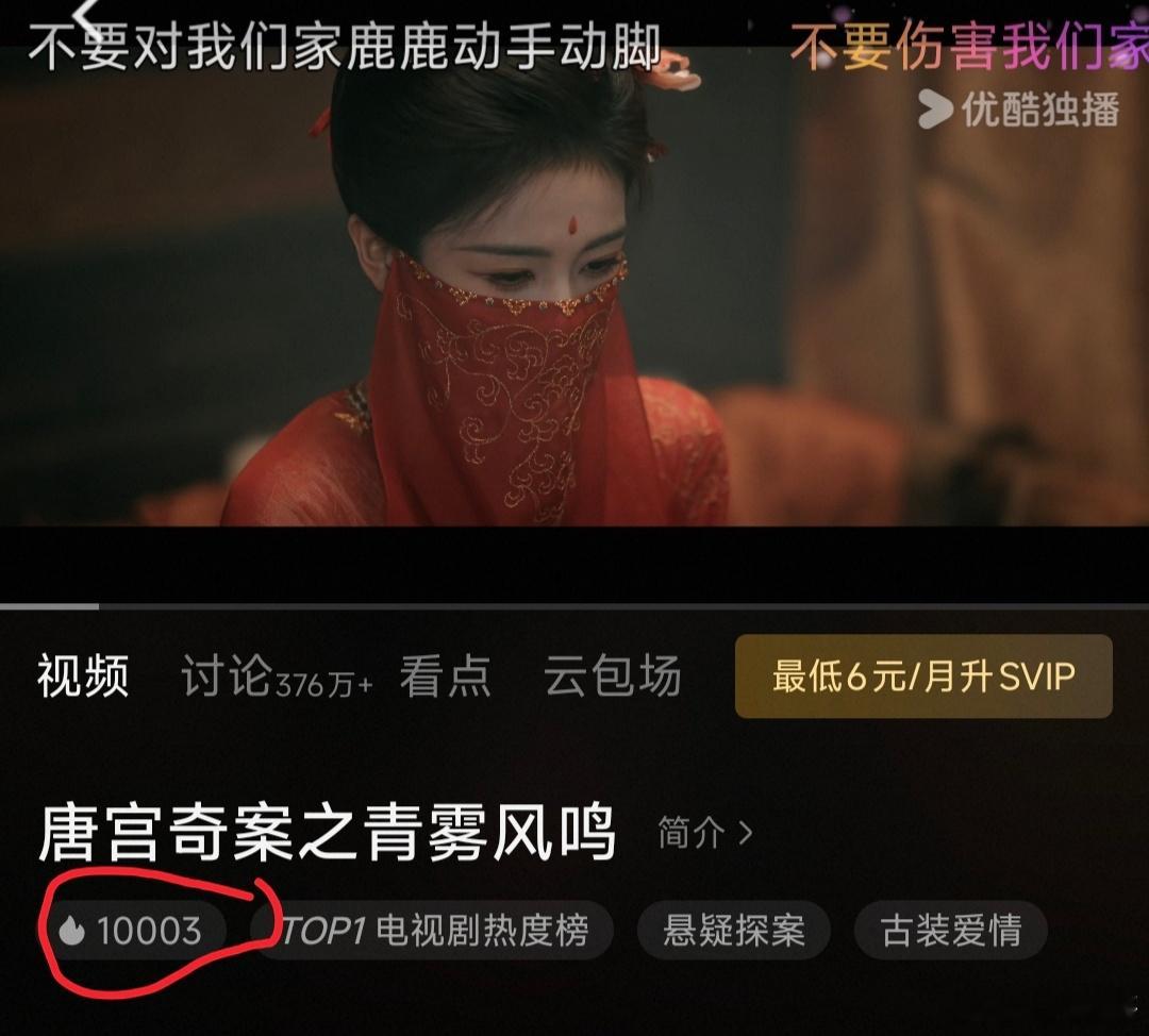 唐宫奇案破万 白鹿的唐宫奇案优酷站内热度破万,第四天热度就破万应该是创造了近期的