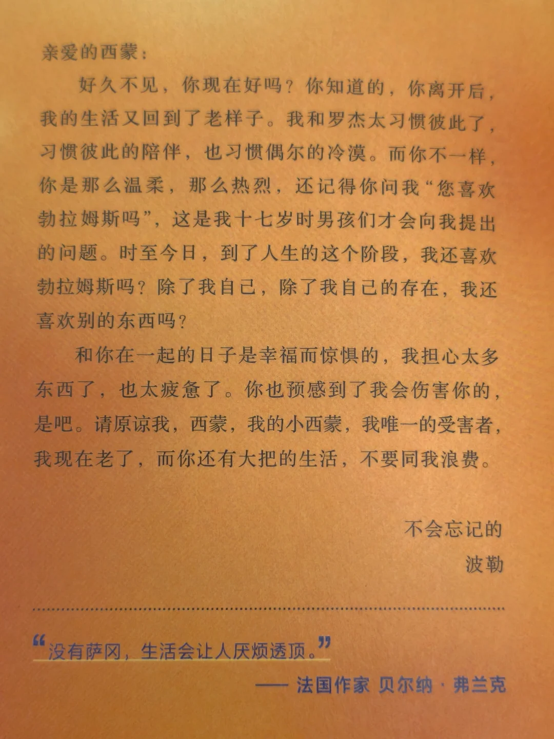 合上书时,耳边仿佛响起勃拉姆斯的《第四交响曲》。那些未完成的旋律,像极了现代人支离破碎的情感。波勒的困境,何尝不是现代人的缩影,在快餐式爱情中追逐刺激,又在古典式深情前落荒而逃。萨冈则用烈酒般的文字告诉我们,爱从来不是救赎,而是照见灵魂荒原的镜子。