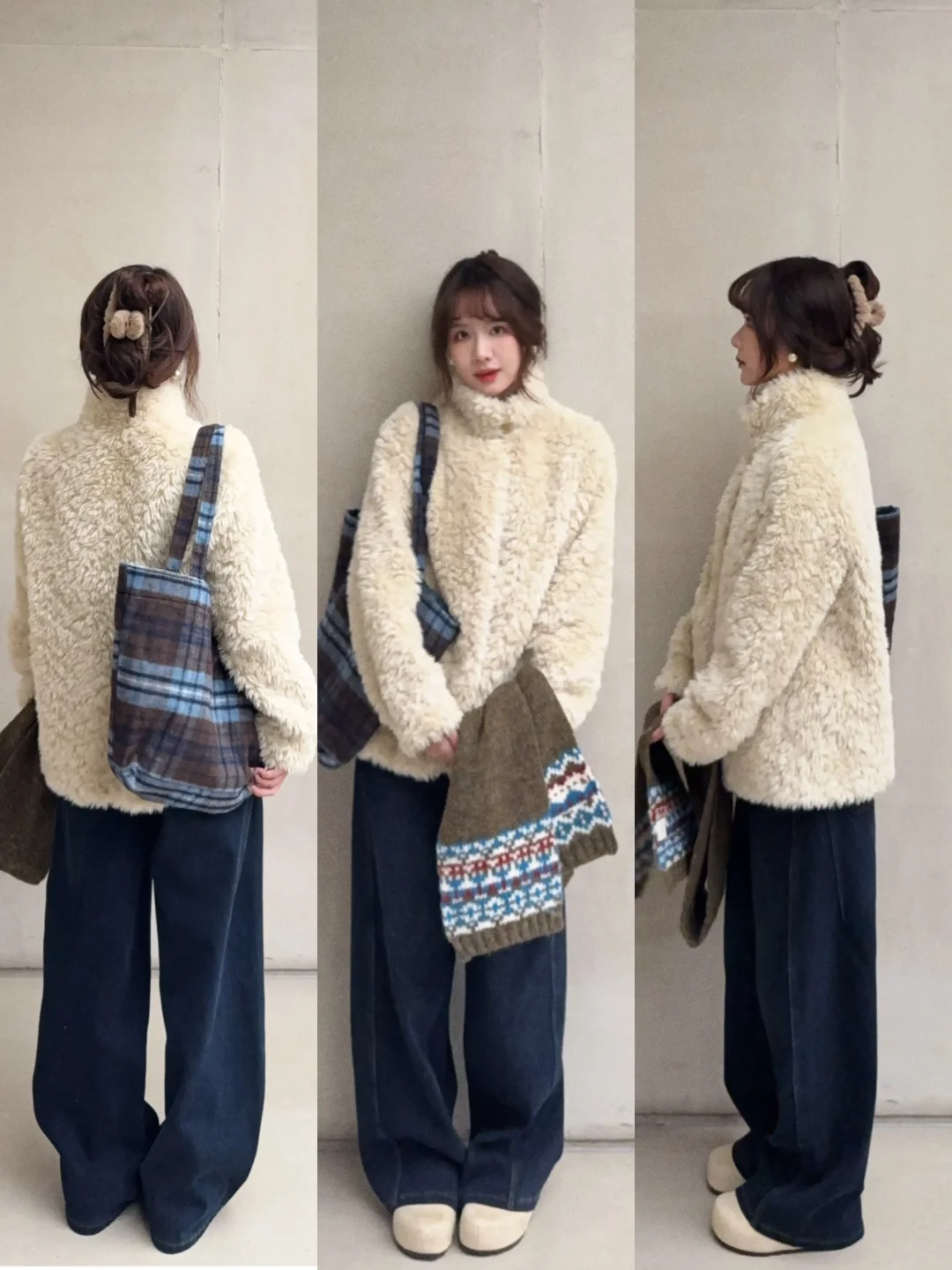 168/104左右 【纯分享 理性种草 天冷加衣注意保暖】 【参考搭配思路即可 不用完全照搬】 一期秋冬毛茸茸合集 环保皮草系列~ 想要日常化的穿搭 其实搭配最基础的牛仔裤就行 松弛休闲又日常 通勤早八都很合适 不会特别用力过猛 也带一点精致感~ 我称之为 松弛感贵气穿搭 其实我个人觉得每件外套都不会廉价 还是看起来有点小小质感的~(性价比来说) 搭配复古蓝蓝灰色原色黑色棕色系的牛仔裤都可以的 版型选择阔腿宽松有垂感的就行~