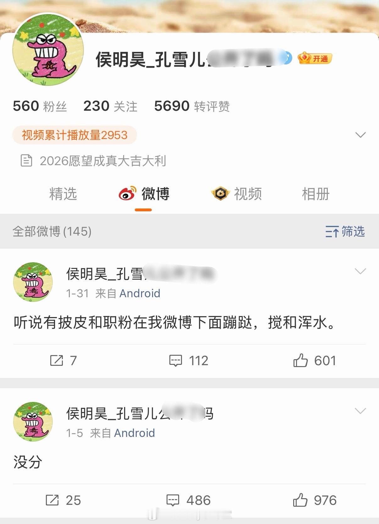有博主更新侯明昊和孔雪儿相关,还说会等时间证明,这是