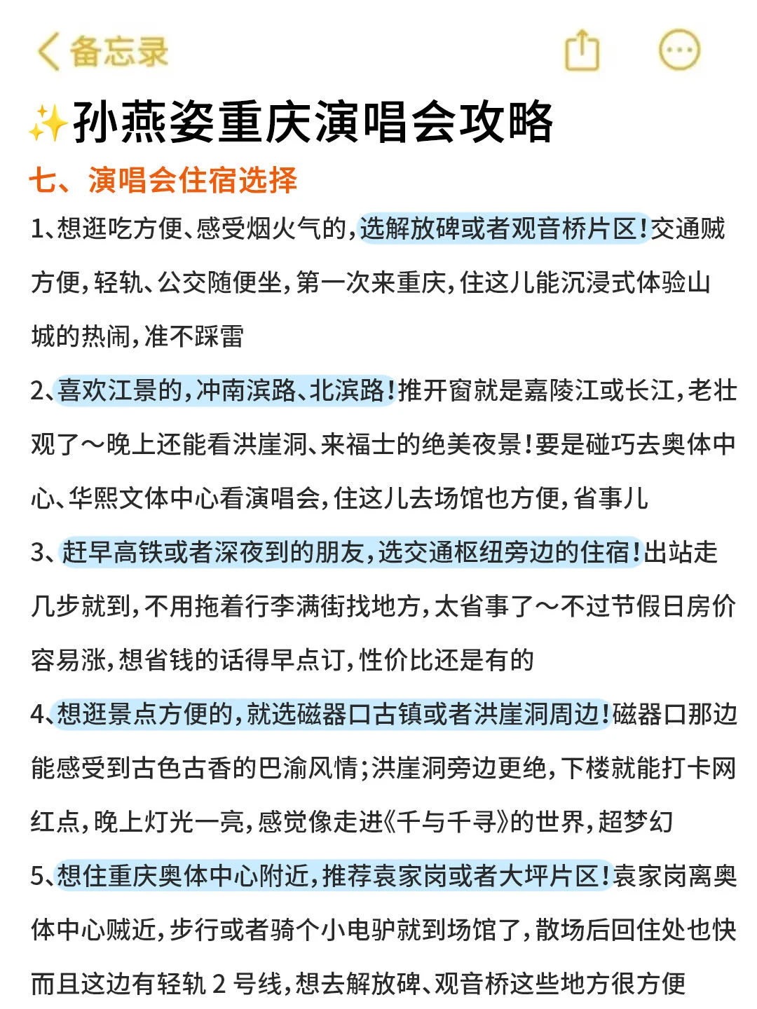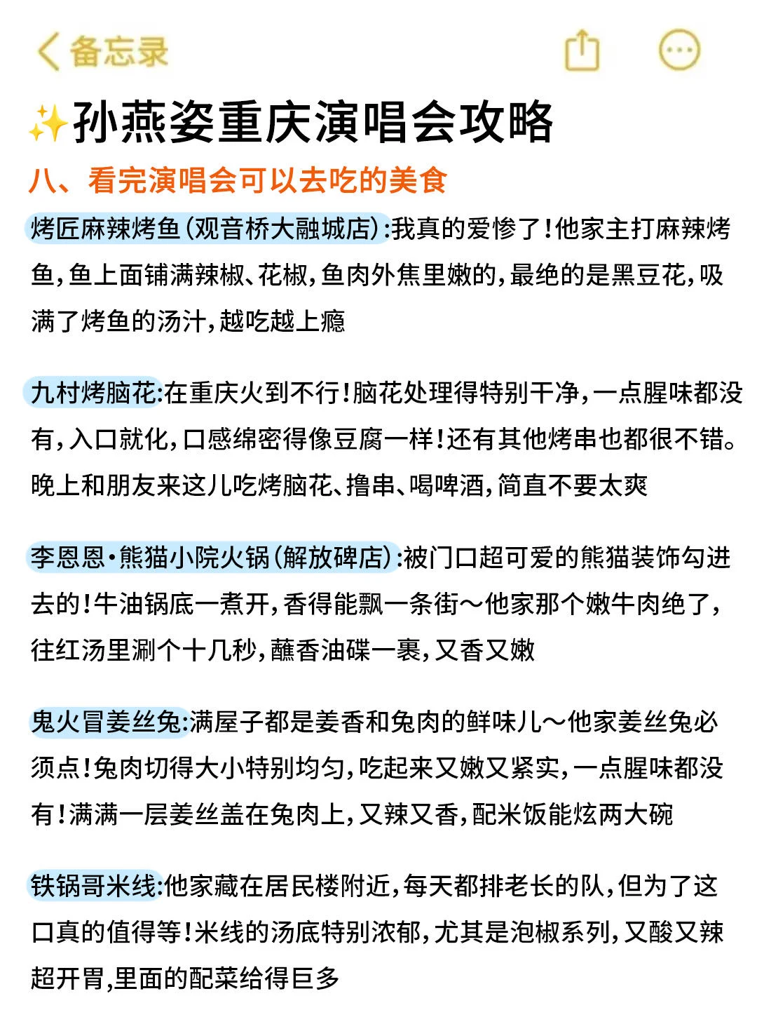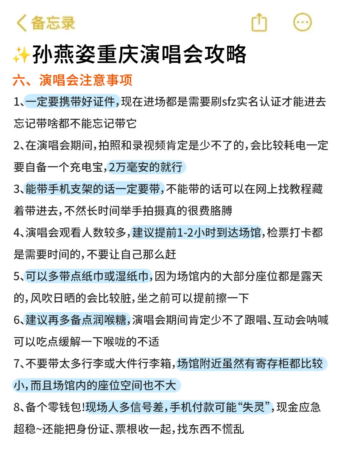 要来重庆看孙燕姿演唱会的姿迷们注意啦!!好多姐妹来之前,都被网上五花八门的攻略搞得晕头转向🥺害,网上好多攻略要么就浅尝辄止,要么没把重点剖清楚!所以我专门💻花时间整理了份超全面的孙燕姿重庆演唱会攻略📝简单好懂,宝子们可以存下来慢慢看~
