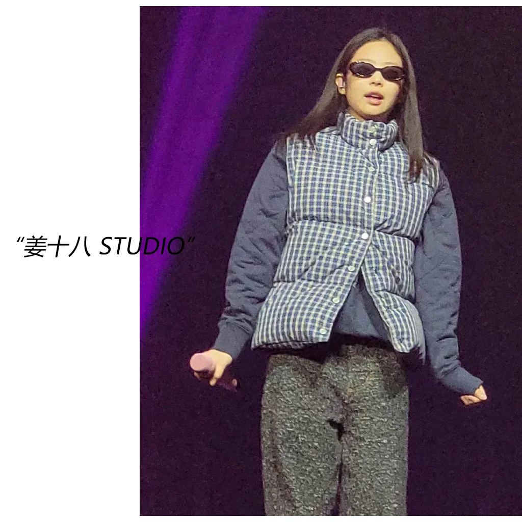 这件韩系格纹马甲真的被我穿明白了✨ 立领设计刚好护住脖颈 薄款厚度现在穿正合适 宽松版型藏肉显瘦 单排扣穿脱方便又显洋气 棉质面料贴身穿超舒服 搭配连衣裙或牛仔裤都好看 算是近期入的百搭外套top3了~