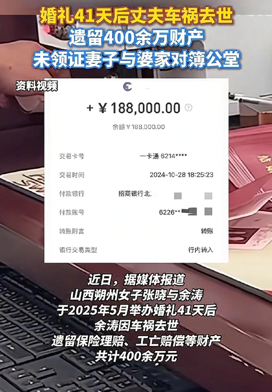 山西,男子和女方办婚礼,却没领证,41天后男子车祸去世,留下400万遗产,女方想