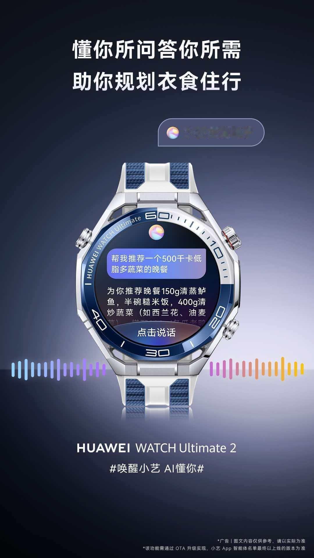 华为Watch Ultimate 2唤醒小艺,AI更懂你。生活助手,规划衣食住行