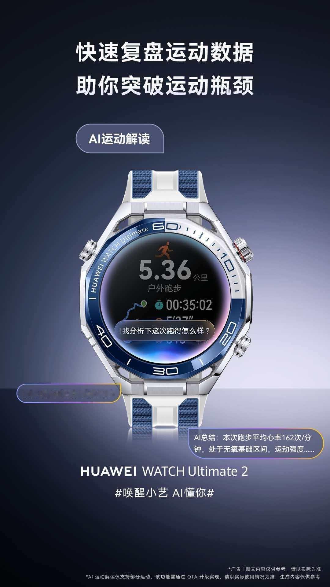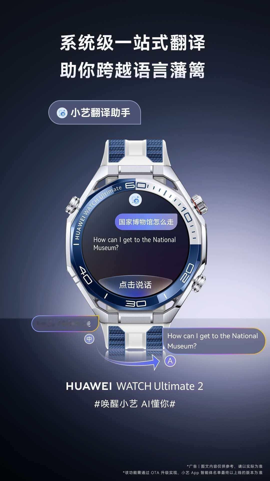 华为Watch Ultimate 2唤醒小艺,AI更懂你。生活助手,规划衣食住行;翻译助手,跨越语言藩篱;AI运动、健康解读,助你读懂身体数据,突破运动瓶颈。