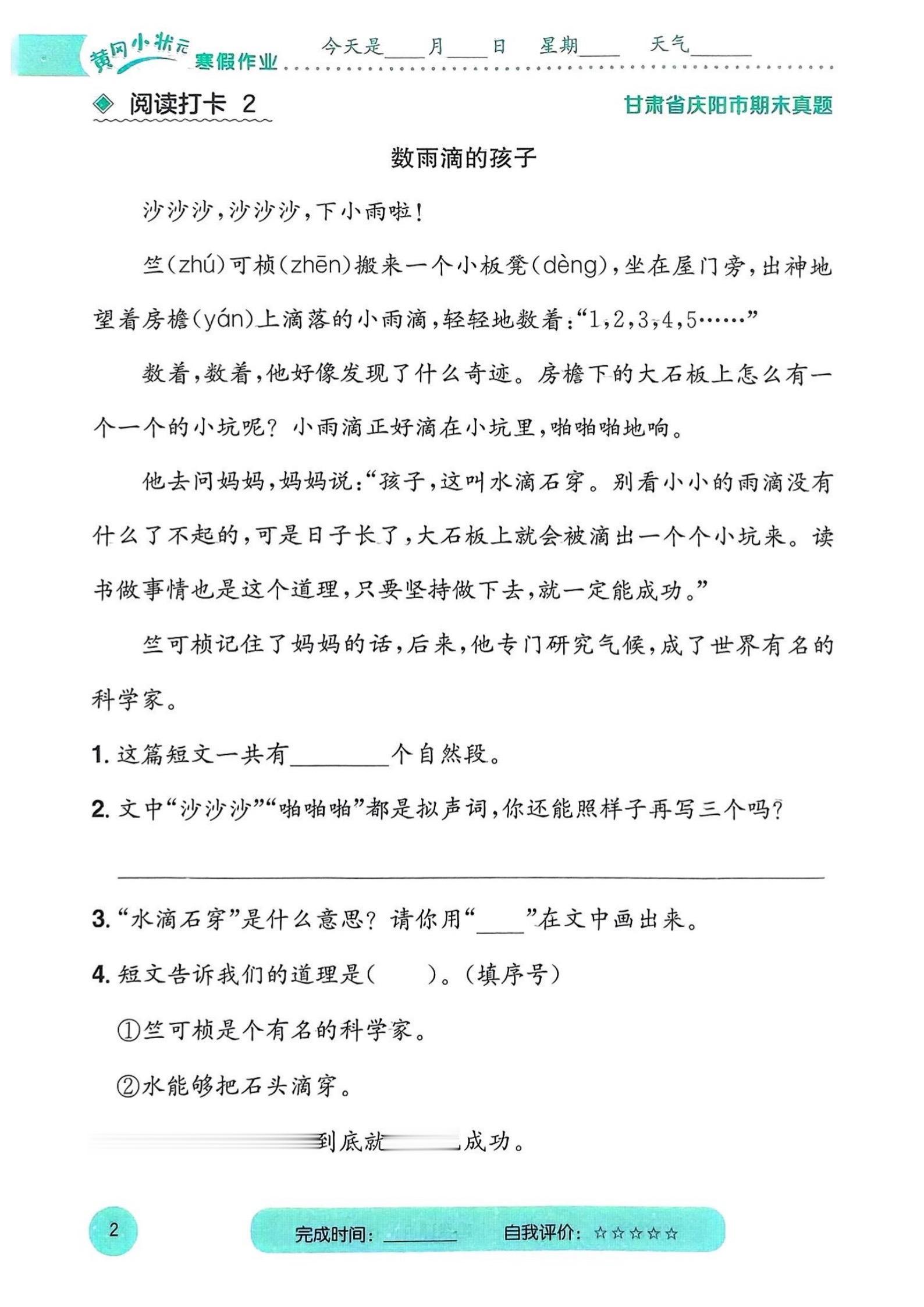 2026春小学二年级语文寒假阅读打卡。 八方文印店。有需要可以...