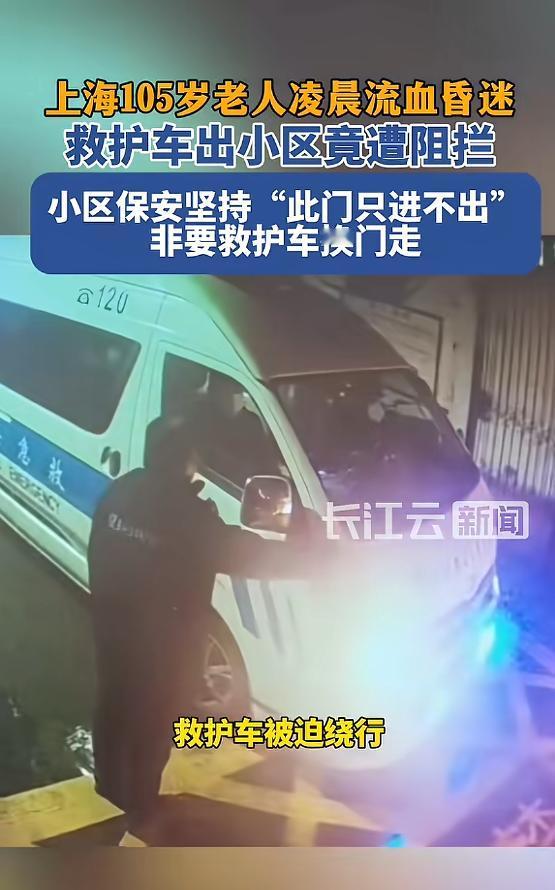 上海百岁老人凌晨摔倒流血, 救护车被拦在东门, 五分钟到底发生了什么? 那天凌晨两点,孟阿婆起夜摔了,头破血流,人直接晕过去。 家属打120,急救车十来分钟就到了,抬上担架直奔最近的东门——结果杆子没抬。 保安说东门“只进不出”,系统坏了,遥控器按不动,电脑也打不开。 记者后来去看了,门好好的,没毛病。 物业后来解释是毛毛雨加冷天,遥控失灵,可钥匙就在手里,为啥不手动抬?没人说。 绕路花了五分钟,阿婆额头缝了七针,万幸没伤到脑子。 物业承认特种车辆该优先,但一线人根本没这根弦。 制度写在纸上,可真到人快不行的时候,谁来按那个“生命快捷键”? 这事真不是小事,也不是偶然。 一个小区,两条开门方式,全在那一晚“刚好”失效,巧得让人没法信。 老人现在在家养着,伤口慢慢结痂。