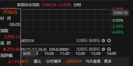 上证报中国证券网讯2月9日,日韩股市开盘齐涨。日经225指数涨1.62%,报55130.63点;韩国综合指数涨4.13%,报5299.10点。