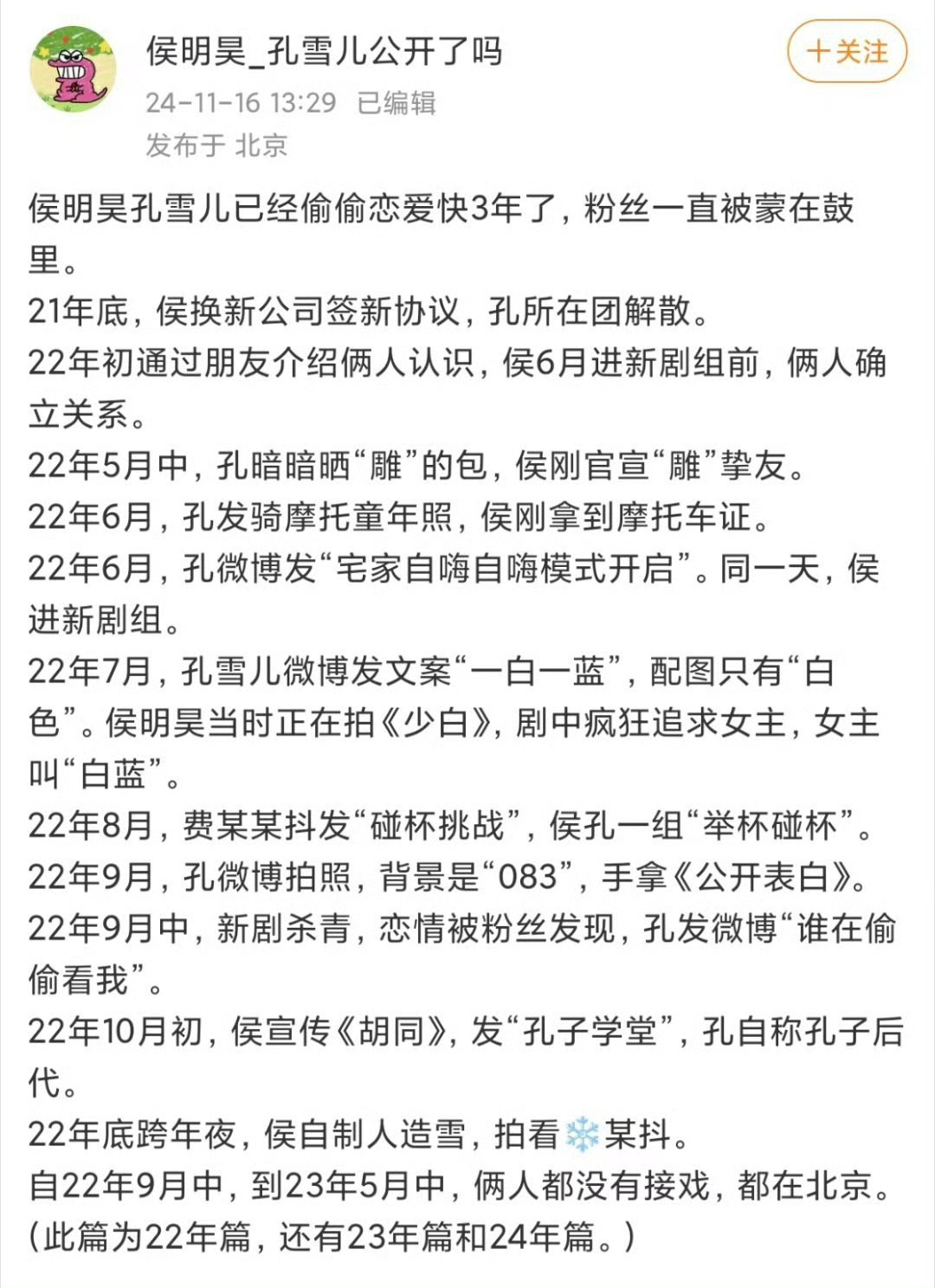 有网友曝侯明昊孔雪儿恋情,目前双方工作室均已辟谣