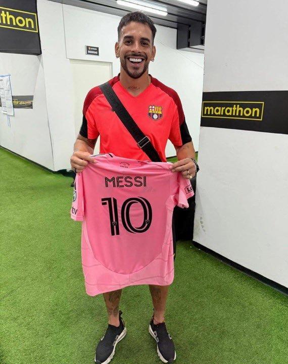 巴塞罗那瓜亚基尔队球员哈维尔·巴埃斯获赠梅西球衣👕