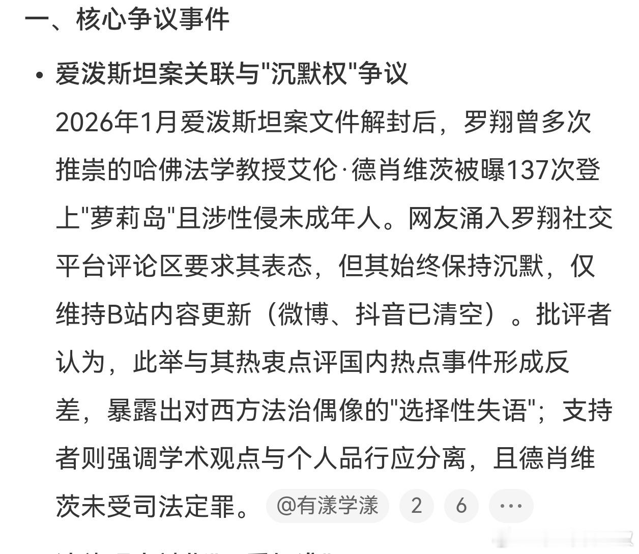 现在年青人不卖罗翔的账,怼他。他推崇的德肖维茨卷入萝莉岛,只是表面现象。根本原因